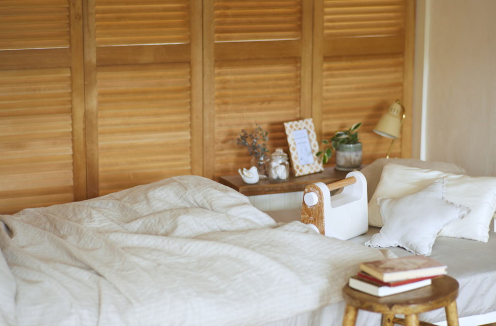 マット不要で、ふとんに伸縮式のノズルを入れるだけでふとんを隅々まで温めるアイテム。ふとんの温めやダニ対策以外にも、衣類乾燥やくつ乾燥(専用アタッチメント付属)、暖房としての使用もOKです。縦置きで収納できるので、省スペースなのもメリット。コンパクトボディに木目調のハンドルで、インテリアにも馴染むデザインです。