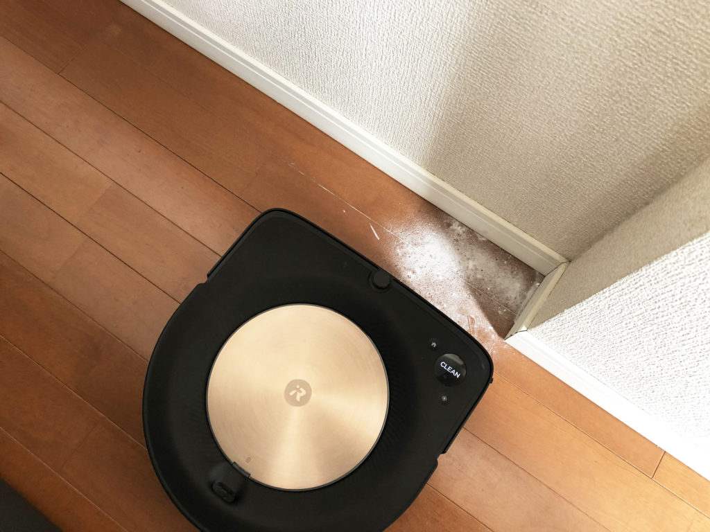 あとはやっぱり、隅に強い! 壁際に来ると、コーナーブラシを押し付けるようにして、ツツツツ……と掃除してくれます。そして部屋の角の部分に、ものの見事にハマったときに気持ちよさと言ったら……。「そうそう、コレをやってほしかったのよ!」と心底思いました。