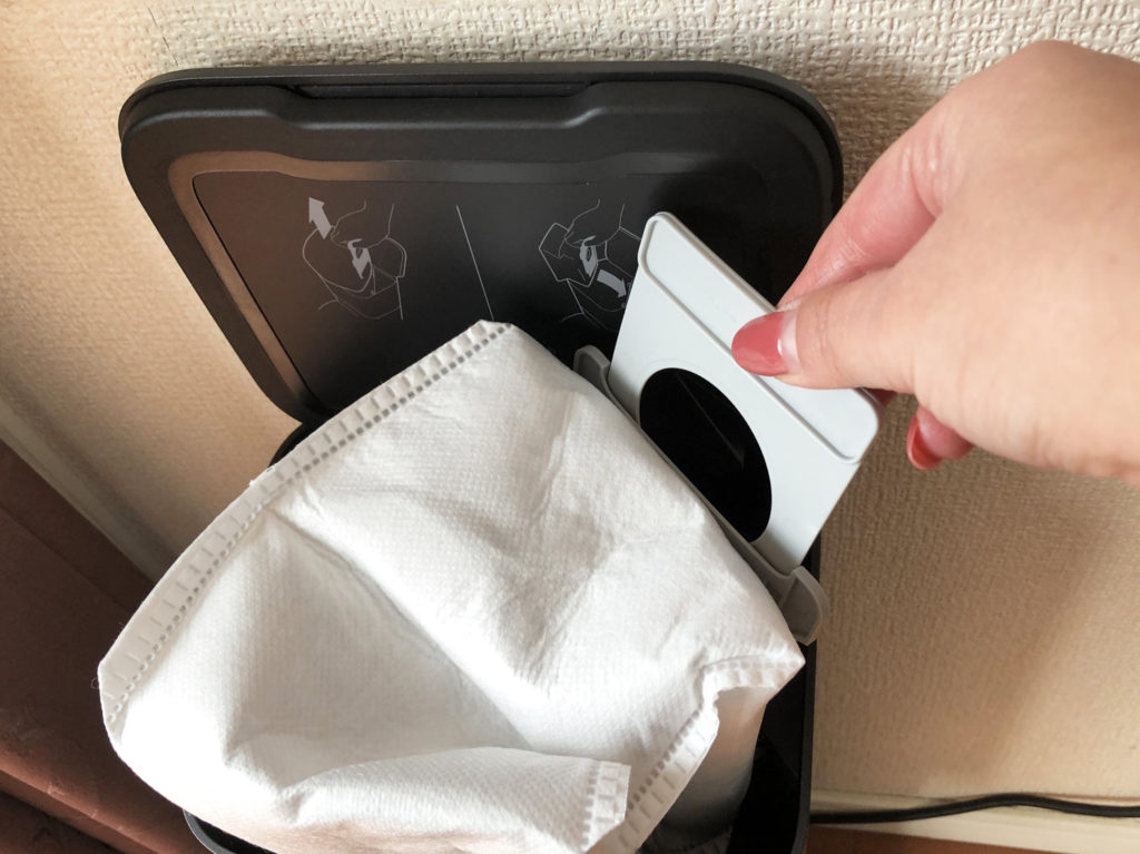 加えてもうひとつ、ゴミ捨てはその都度ホコリが舞い散るため、衛生面も心配です。クリーンベースは、中の紙パックにダスト容器30杯分のゴミを溜め、いっぱいになったらそのまま捨てられるので、ホコリの舞い散りはほぼゼロ。アレルギーが気になる人にとってうれしい機能ですね。