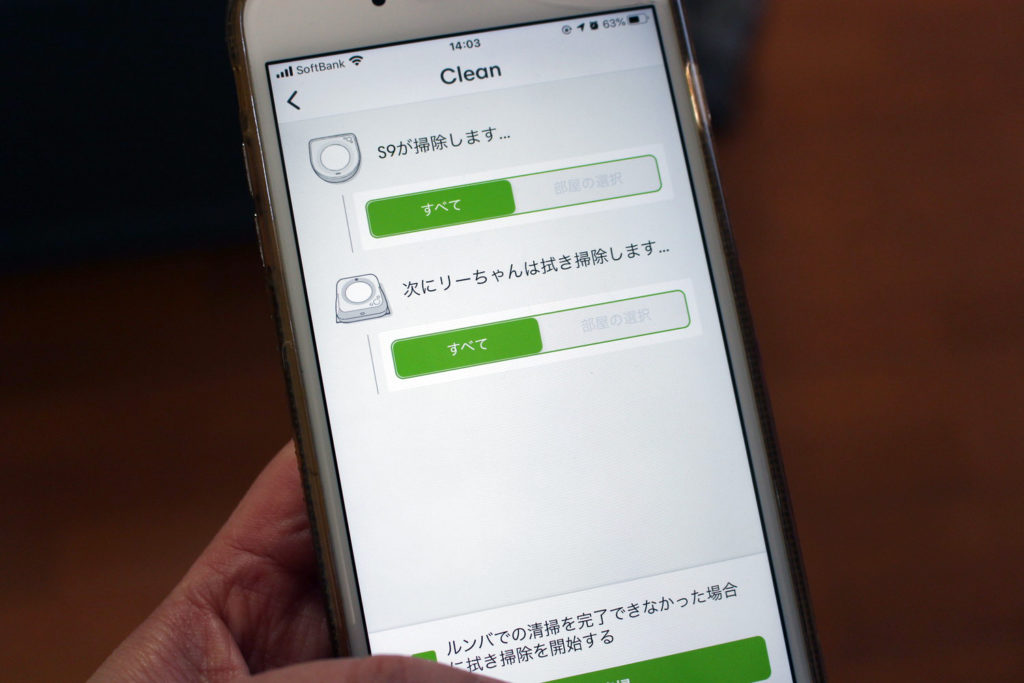 前置きが長くなりましたが、さっそく使ってみましょう! クリーンベースで充電後、Wi-Fiネットワーク環境下でスマートフォンにダウンロードした「iRobot HOME」アプリにルンバ s9+を登録。これにより、操作はすべてスマートフォンから可能になります。準備ができたら「CLEAN」ボタンを押して掃除をスタート。初めて掃除する部屋の場合、少々“探検”しますが、3回ほど掃除すると間取りを覚え、境界線を引いて部屋の名前をつければ個別に管理できるようになります。