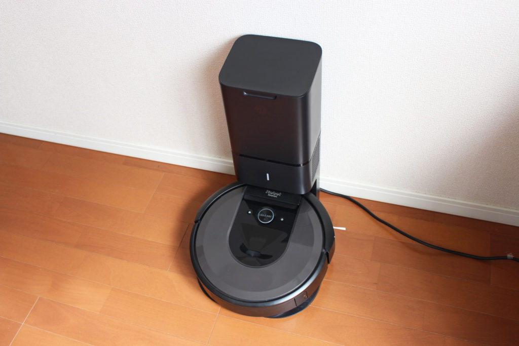 さて掃除が終わるとルンバは自動で充電台「クリーンベース」に戻り、ものすごい勢いでダスト容器のゴミを吸い上げ、空っぽにしてくれます。これこそが「ゴミ捨ても自動でやってほしい!」というユーザーの声に応えた機能。私もついダスト容器のゴミ捨てを忘れがちで、ダメ人間だな~と思っていましたが、私よりルンバの進化のほうが早かった。これなら自分を責めずに済みそうです(笑)。
