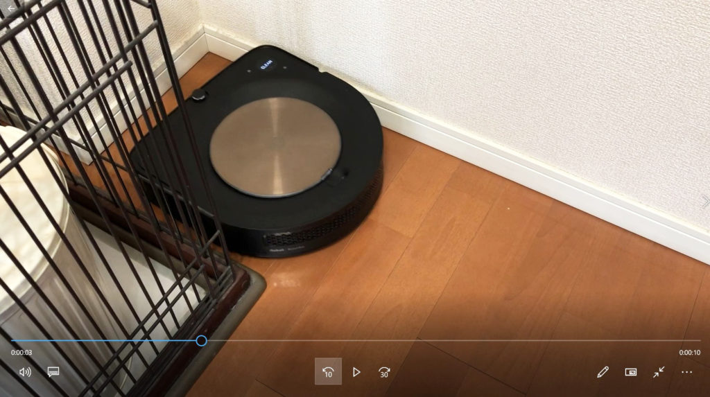 袋小路に入り込む瞬間も目撃。わが家には、壁とペットのケージの間にムダな凸凹があり、なかなか掃除が行き届かないのが悩みでした。それが下の動画の部分。意外と狭そうに見えますが、ルンバは躊躇なく入り込み、角もしっかり掃除したあと、にじりながらバックして出てきました。君、バックもできるんかい!