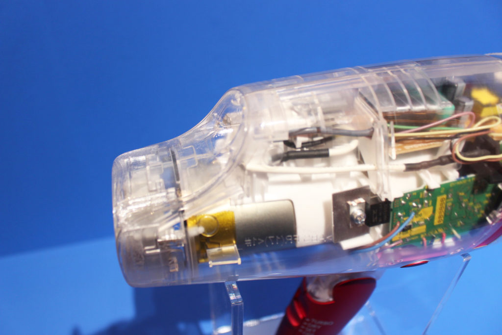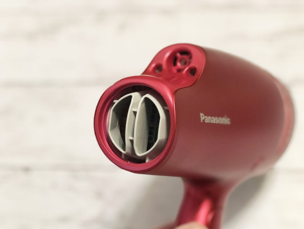 形状は一見、昔ながらのドライヤーに見えますが、実はノズルに工夫があります。それが吹き出し口に搭載した「速乾ノズル」。強弱差のある風を起こす「速乾ノズル」を搭載することで髪をほぐし、効率よく髪を乾かすというもの。片手で髪をほぐしながら乾かすことが多いですが、「速乾ノズル」はこれを代行してくれるわけですね。ドライヤーをしている間もスマホを手放せないという人でも、しっかり髪が乾かせそうです(笑)。