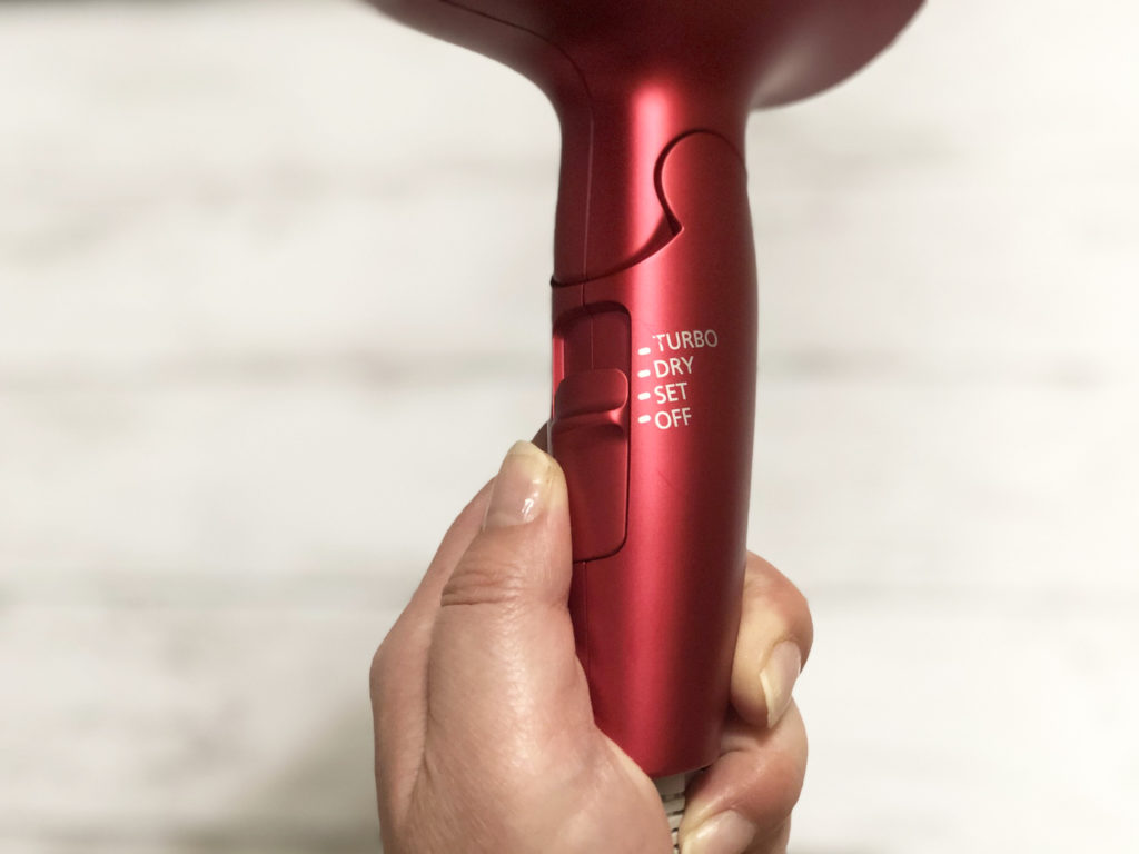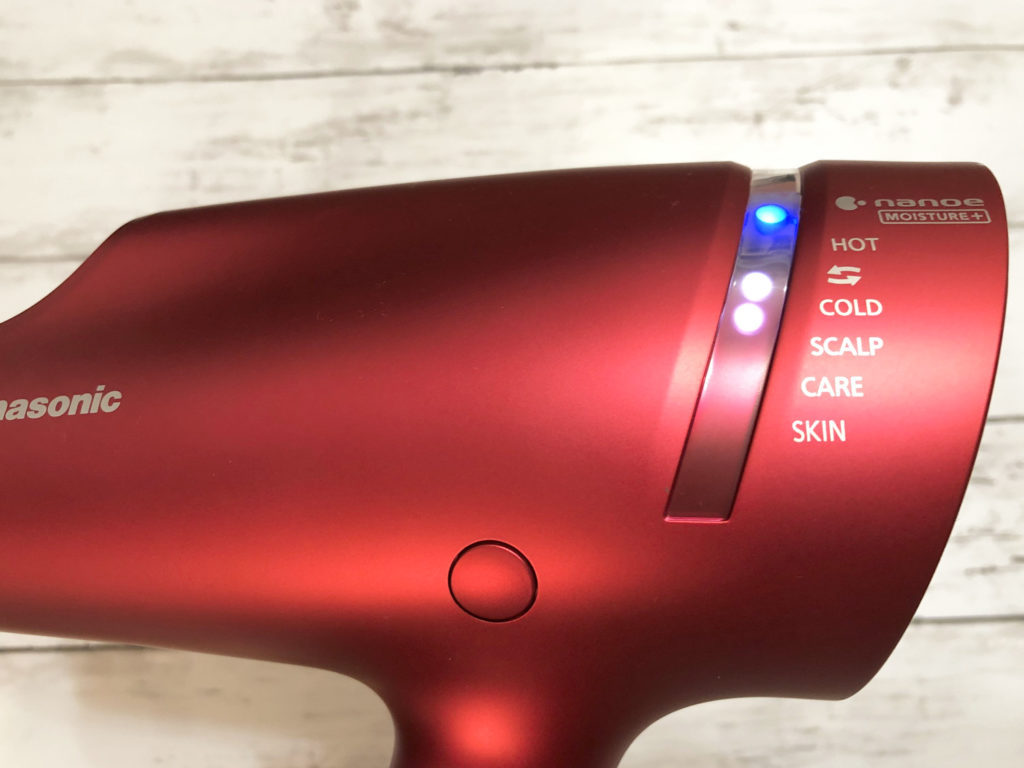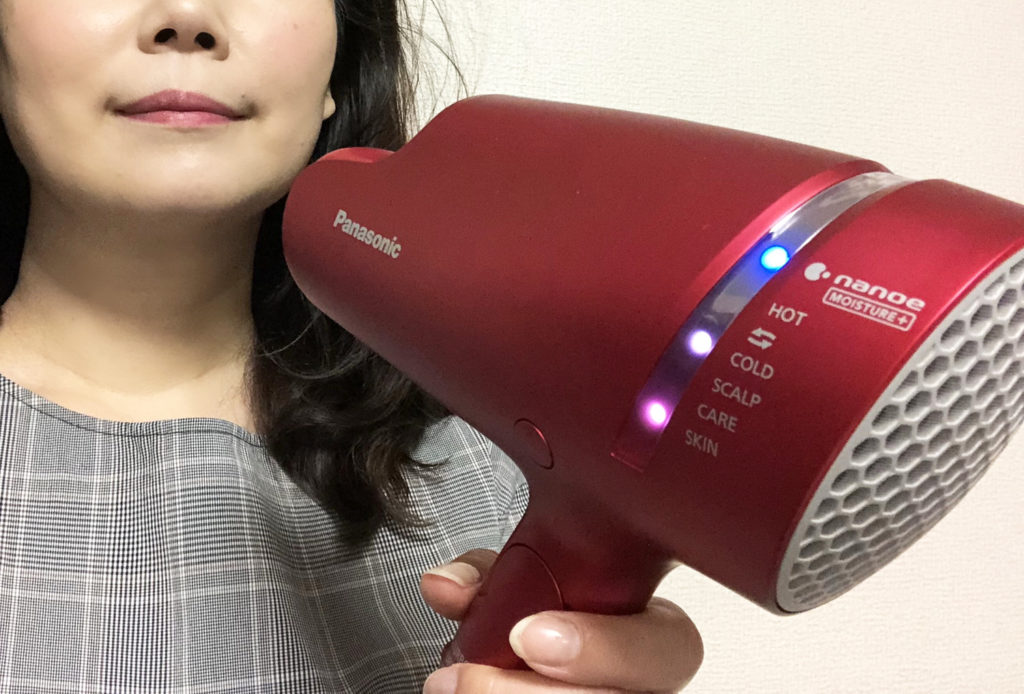 ちなみに私が「ナノケア」でもう1つ気に入っているのが、「スキンモード」です。「ナノイー」と「ミネラルマイナスイオン」を含んだ風が肌のうるおいを保ってくれるというもの。例えばお風呂上がりに、「髪を速く乾かさないと頭皮に悪い」「いや先にスキンケアしないと乾燥しちゃう」と、いつもバタバタしていますが、これなら髪を乾かすついでにスキンケアできるので、化粧水はあと回しにできるのが便利。ドライヤーといえば乾燥するイメージがあってできるだけ顔に当てないようにしてきましたので、ちょっと不思議な感覚ではありますが。