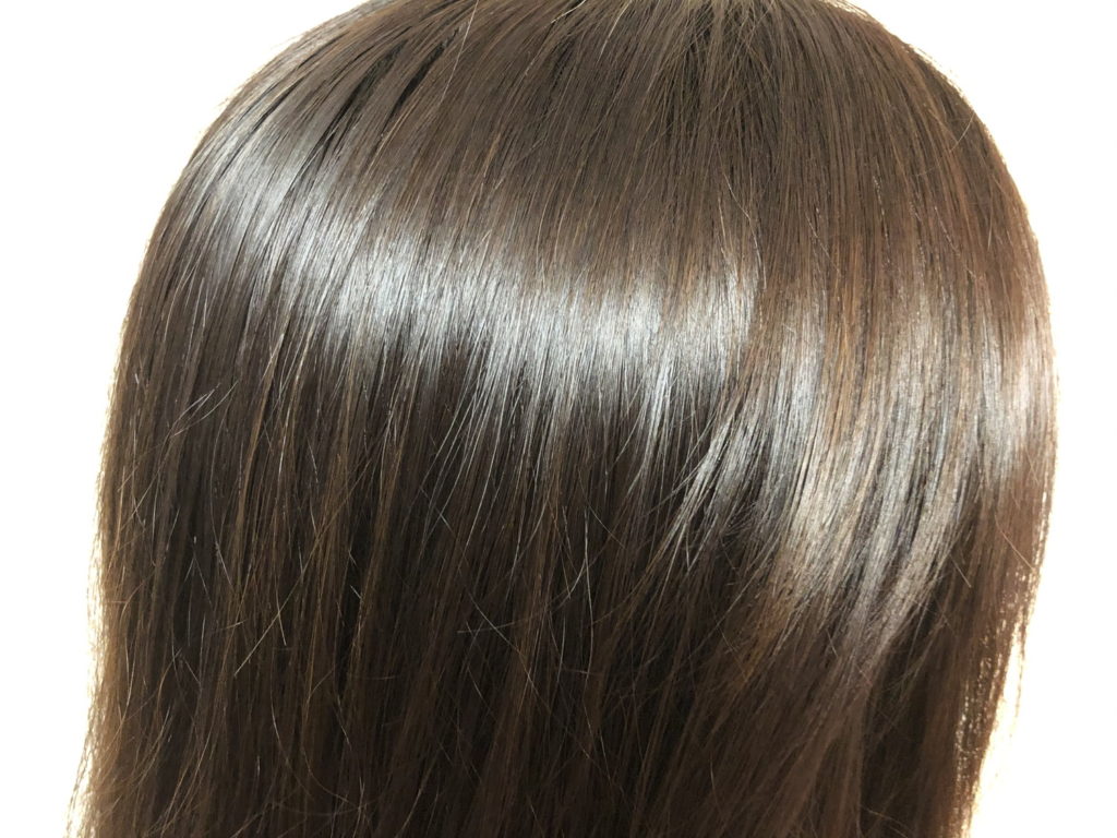 こうして仕上げた髪がこちら(下写真)。それなりにダメージを自覚している髪ですが、グロススプレーを吹きかけたようにツヤッツヤになりました!