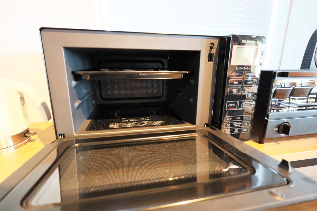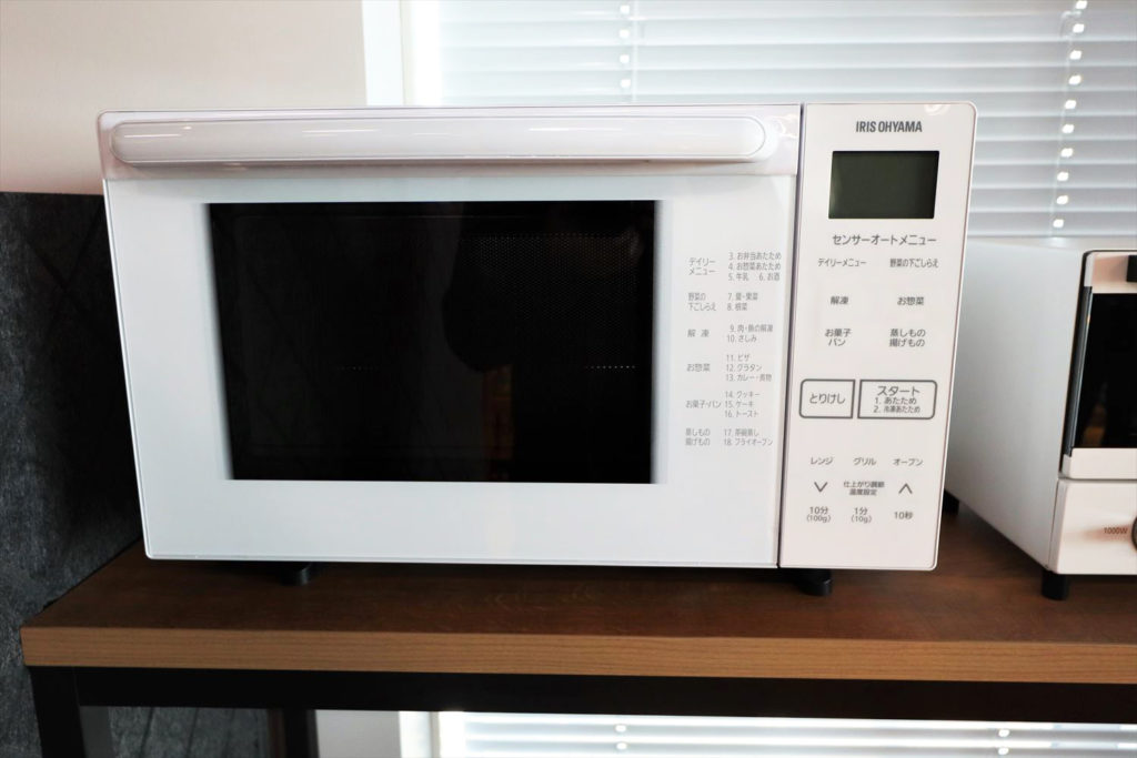 続いて紹介するのは、レンジ・グリル・オーブンの3つの機能を搭載したオーブンレンジ。参考価格はブラックの「BLMO-F1801-B」、ホワイトの「WLMO-F1801-W」ともに2万800円です。こちらは食パンが4枚入る広さのフラットテーブル仕様。レンジ出力は200/500/600/900Wの4段階に切り替えられます。お惣菜のあたためや刺身の解凍、フライオーブンなど18種類のオートセンサーメニューを搭載しているのも便利です。