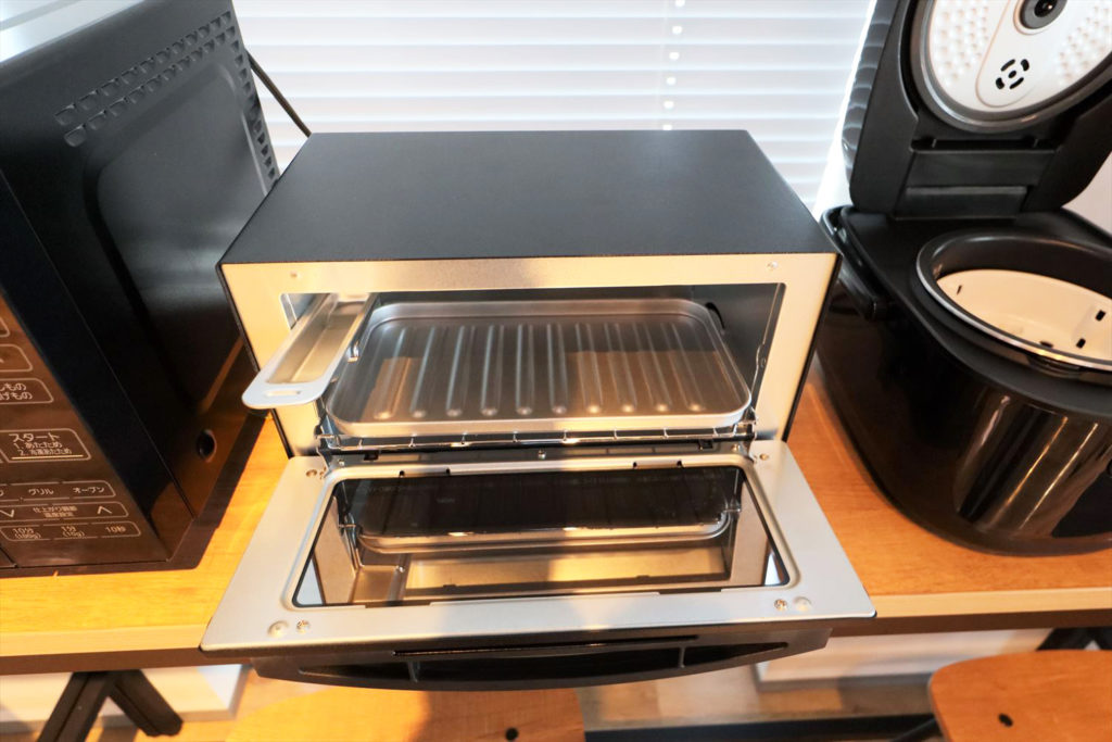 スチームオーブントースターもラインナップしています。庫内に水を入れたスチームカップを置くことで、中はもちもち外はカリッとしたトーストが楽しめます。火力は420W/580W/1000Wの3段階切り替えが可能。タイマーは15分まで。参考価格はブラックの「BLSOT-011-B」、ホワイトの「WLSOT-011-W」ともに4980円。