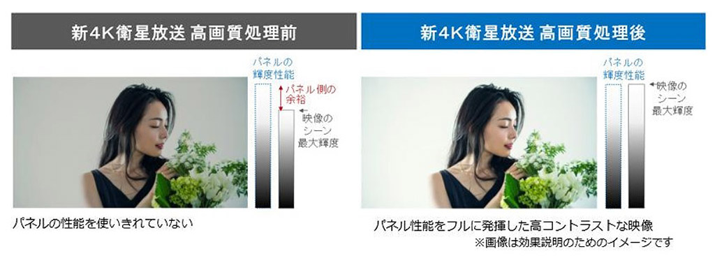 HX850シリーズは、4K液晶ビエラのハイエンドモデル。新4K衛星放送の4K/HDRコンテンツをより高画質に再生するために、新たな画質処理アルゴリズムを採用。HLG映像信号に含まれる明るさ情報をシーンごとにリアルタイムに解析し、パネルの持つコントラスト性能を最大限引き出せるように高画質化処理を行います。