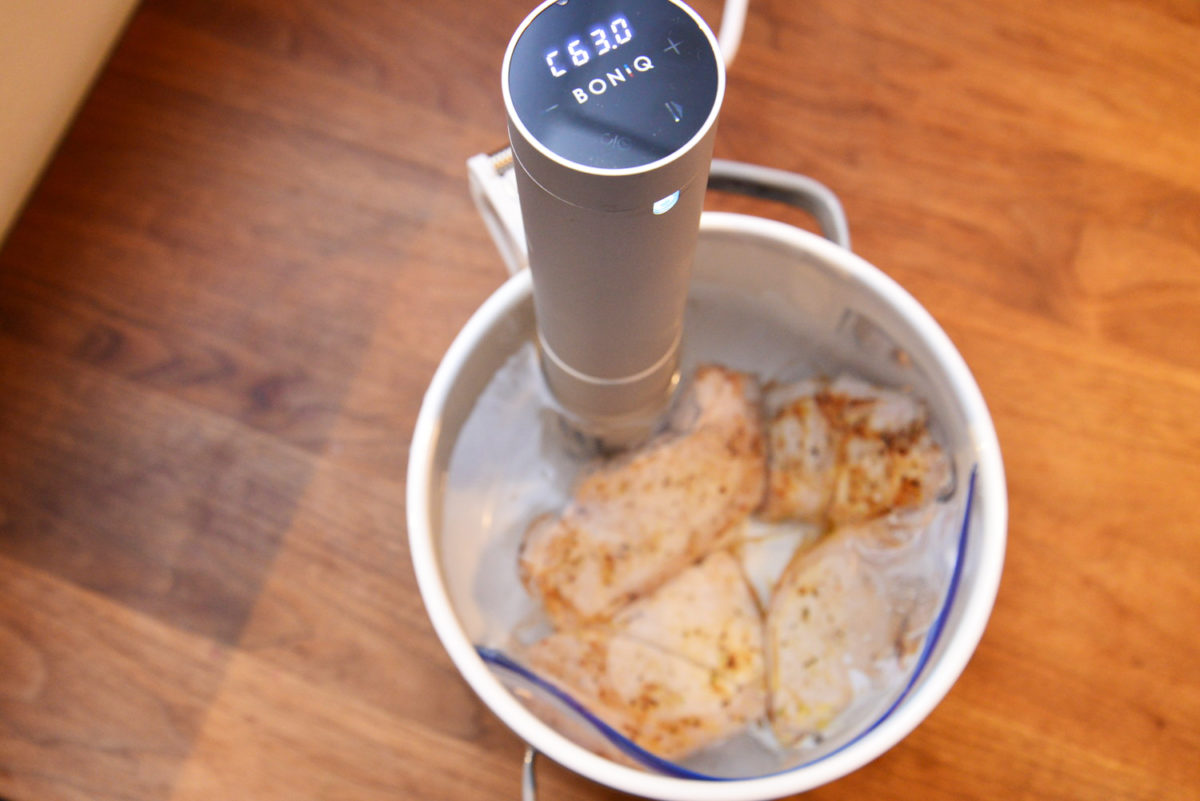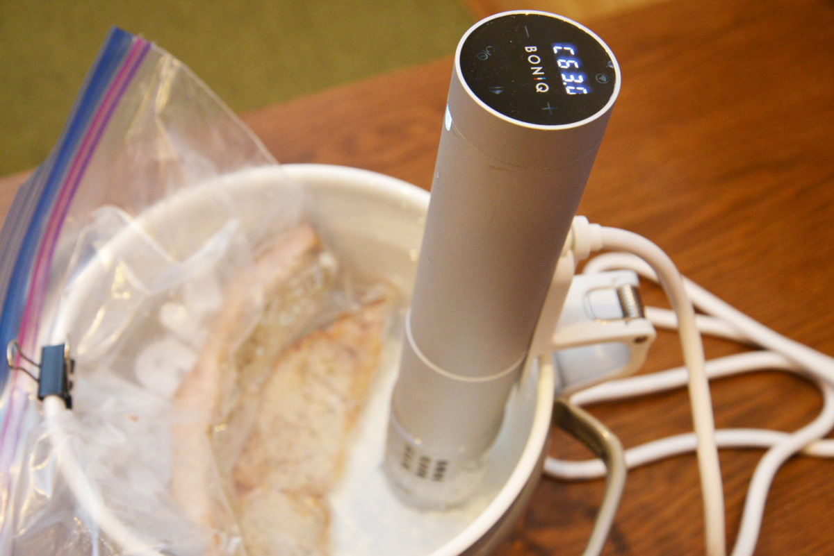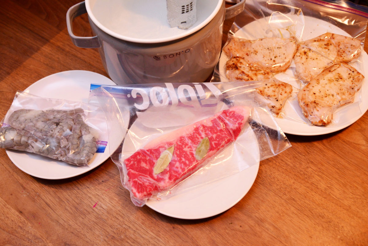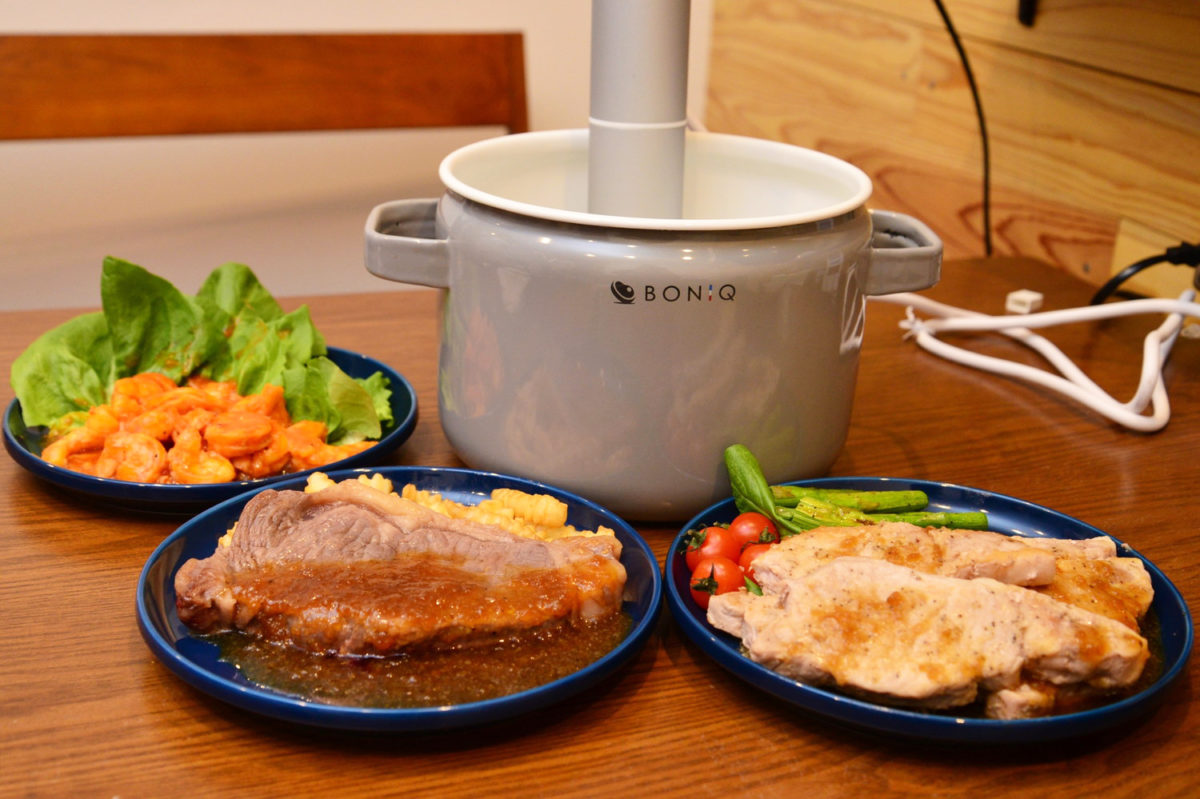 このように、本機はほったらかしで調理できることと、低温調理による独特の食感やうまみが楽しめるのが大きなメリット。このほか、湯せんの容量は最大20Lまで対応しているため、設定温度が一緒であれば、複数・多種類の同時調理ができる点にも注目です。複数のフリーザーバッグを使い、その日の夕ご飯の主菜と副菜、翌朝の主菜と副菜、お弁当用のおかずを同時に作る……なんてことも可能。ストック用のサラダチキンを作るなど、冷凍・冷蔵保存の作り置きにも適していると感じました。