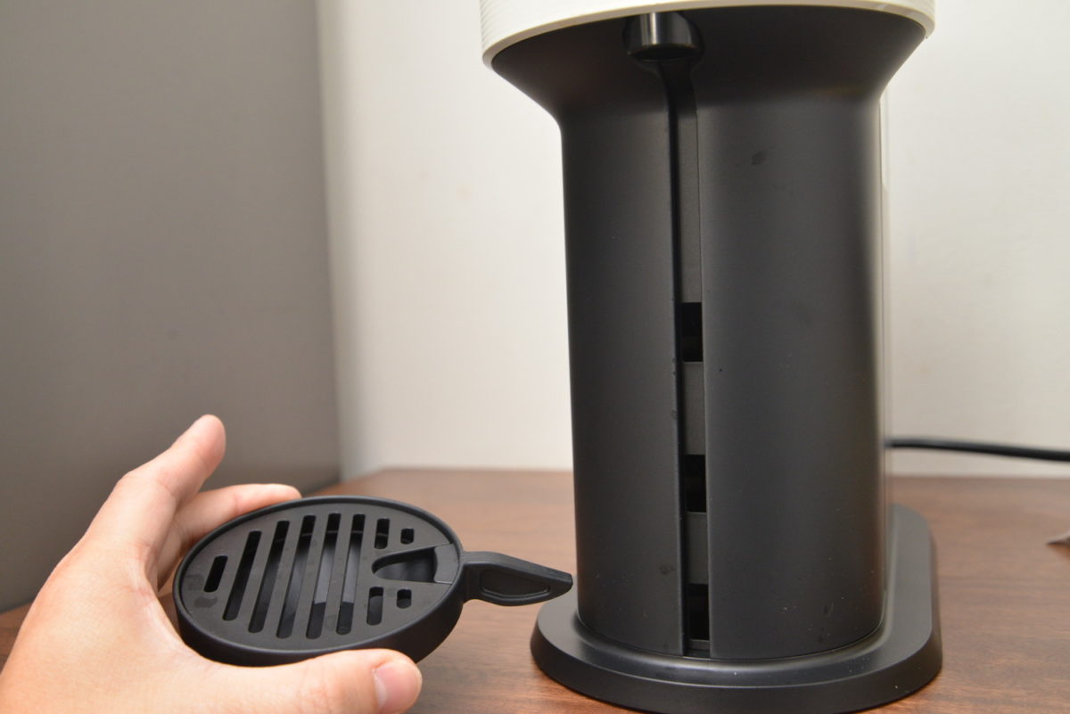 なお、使い終わったカプセルは、ヘッドを開くと自動的に本体中央のカプセルコンテナに落ちるのが便利です。ただ、やや本体に奥行があるので、個人的にはこのカプセルコンテナをなくしてコンパクト化しても良かったのかな、と感じました。