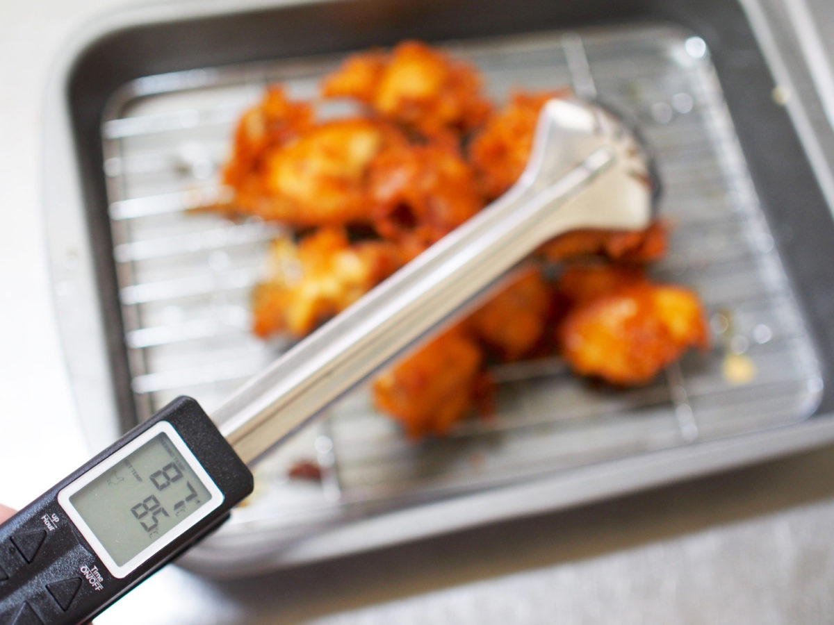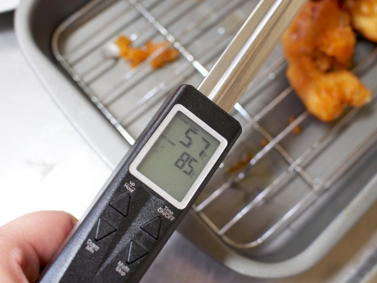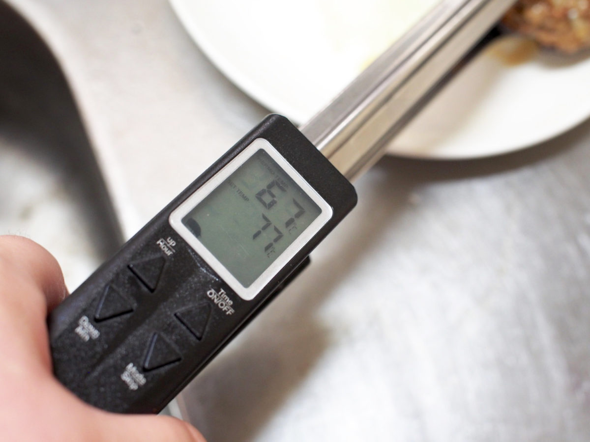 今回も「こんなもんかな?」と思ったところで温度を計ってみると、まさかの設定温度を10℃も下回るという状態でした。カンに頼るだけだと生焼けになるはずですね……。トングがなければ、また同じ失敗を繰り返すところでした。