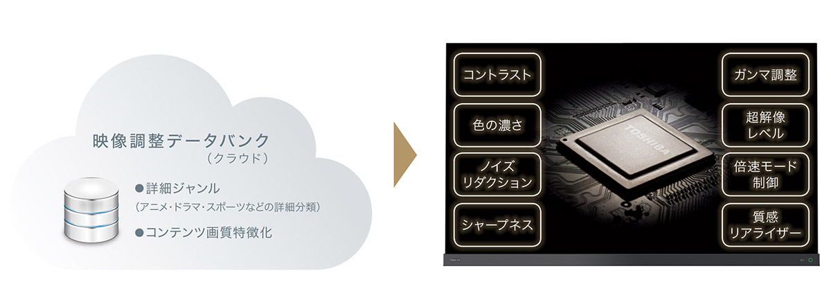 クラウド連携によりコンテンツに最適な画像調整を自動で行う「クラウドAI高画質テクノロジー」のほか、「地デジAIビューティPRO」や「ネット動画ビューティPRO」、「おまかせAIピクチャー」、「インパルスモーションモード」(ゲームモード時)などの各種高画質化技術も備えています。