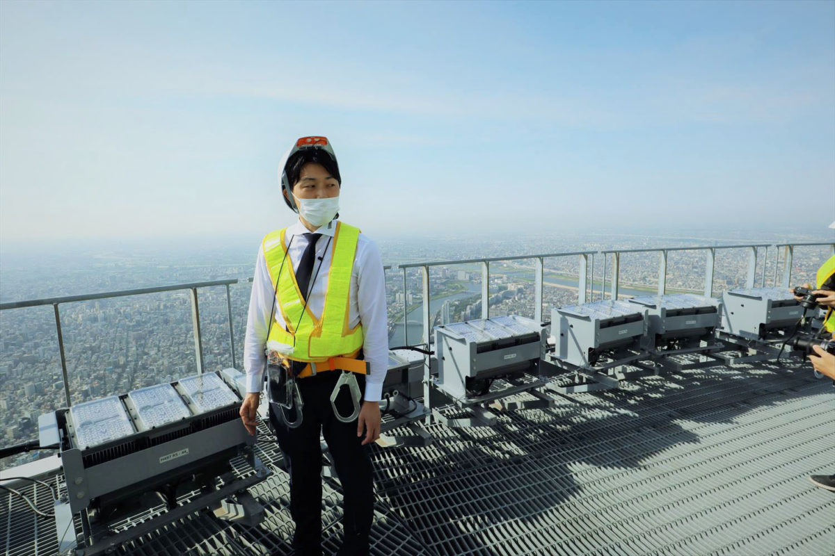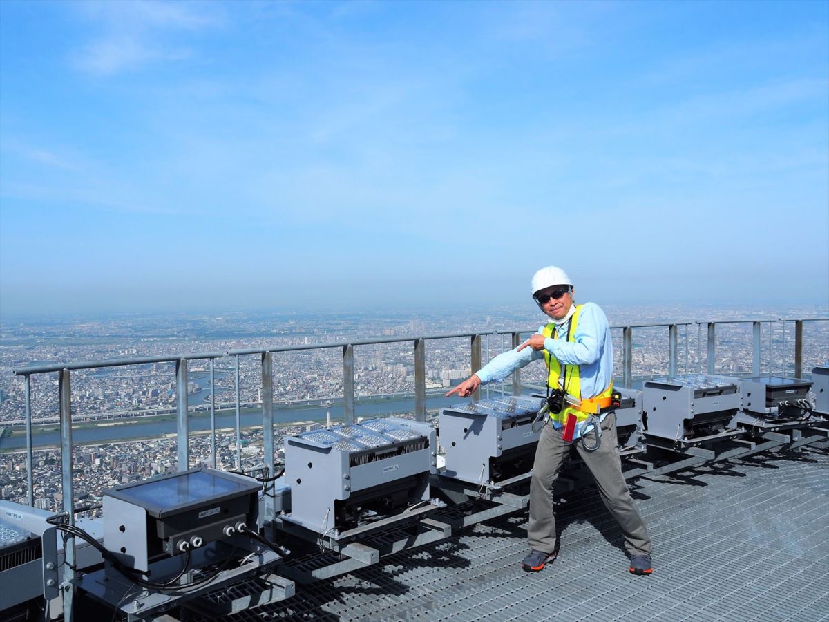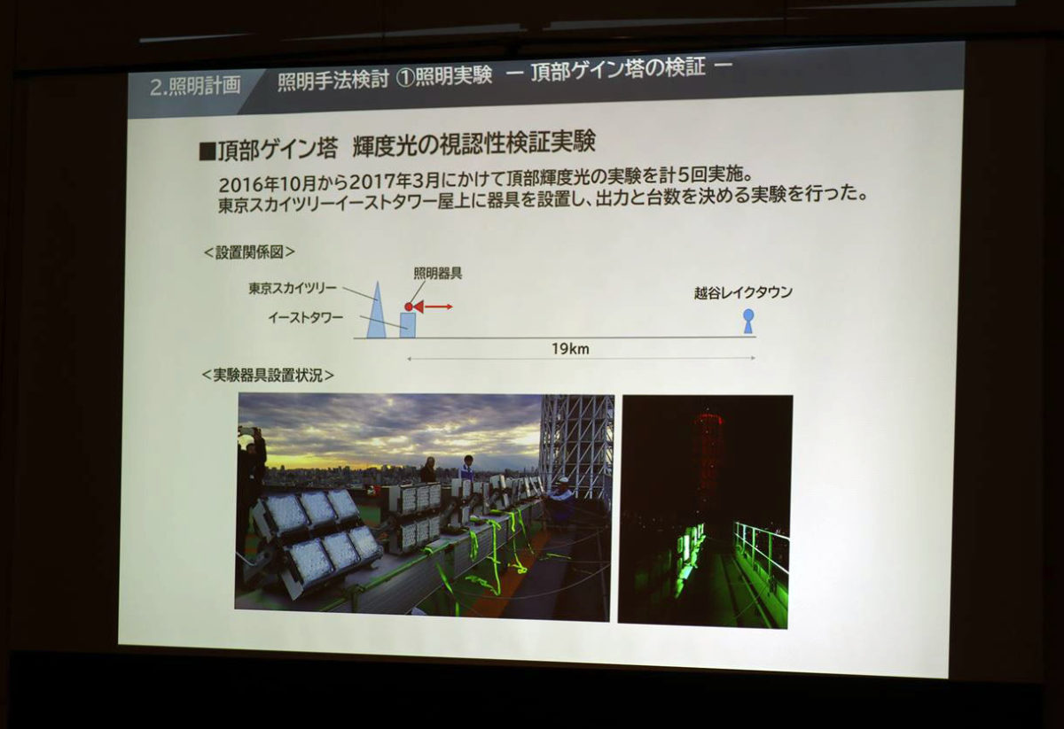 スカイツリー横のイーストタワー屋上に照明器具を設置して視認性を検証