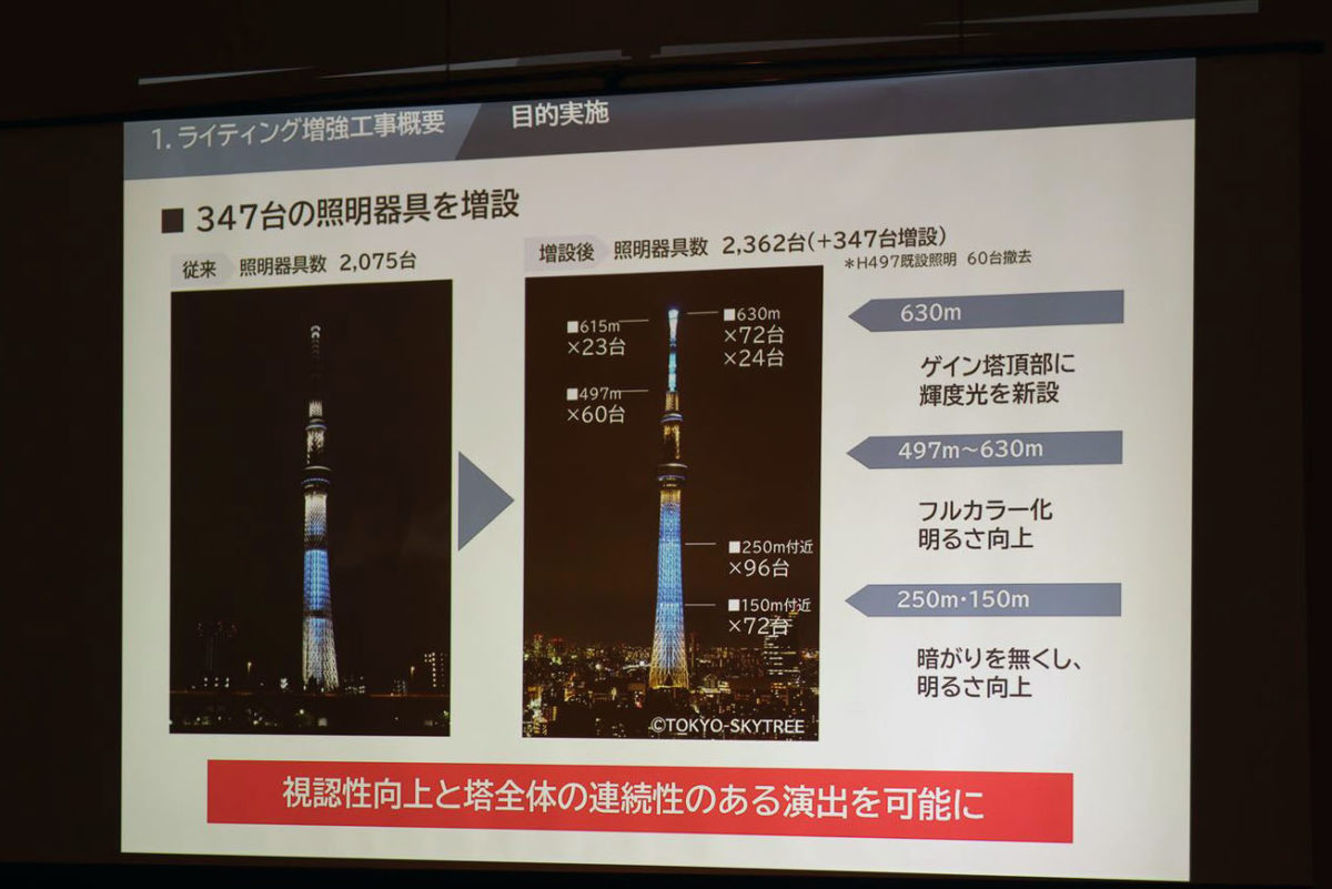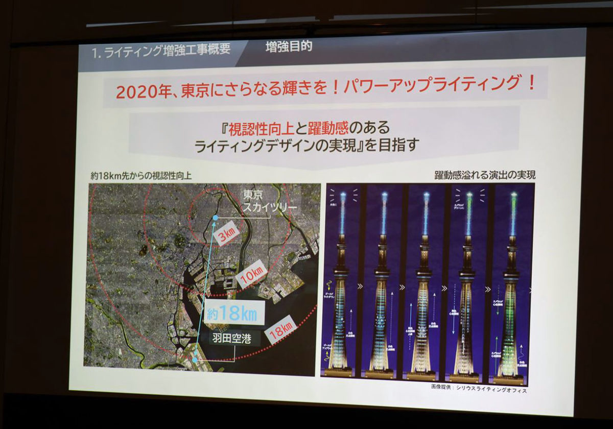本来なら今年は東京オリンピックが開催され、訪日外国人が大挙して東京にやってくるはずでした。その時、東京の新しいシンボルであるスカイツリーも注目されることは確実。そこで、運営会社の東武タワースカイツリーでは、2015年からライティングのリニューアルの検討をスタート。2019年5月から「2020年、東京にさらなる輝きを!パワーアップライティング」をテーマに照明の増強工事を実施してきました。それが今年2月に完成し、2月27日から運用を開始していたのです。