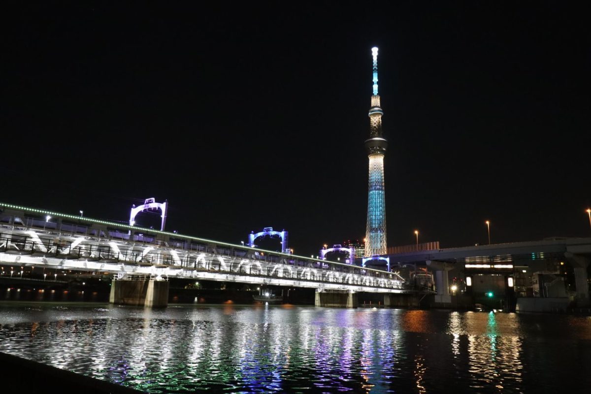 東京の街を歩いていると、ビルの谷間からスカイツリーがひょっこりと見えることがよくあります。コロナ禍の影響により、まだまだ外出がはばかられるご時世ではありますが、東京の夜を彩るスカイツリーの光の競演を見れば、窮屈な気持ちが少しはラクになるはず。行き詰まったら夜空に輝くスカイツリーを見て、もう少しガンバロー!