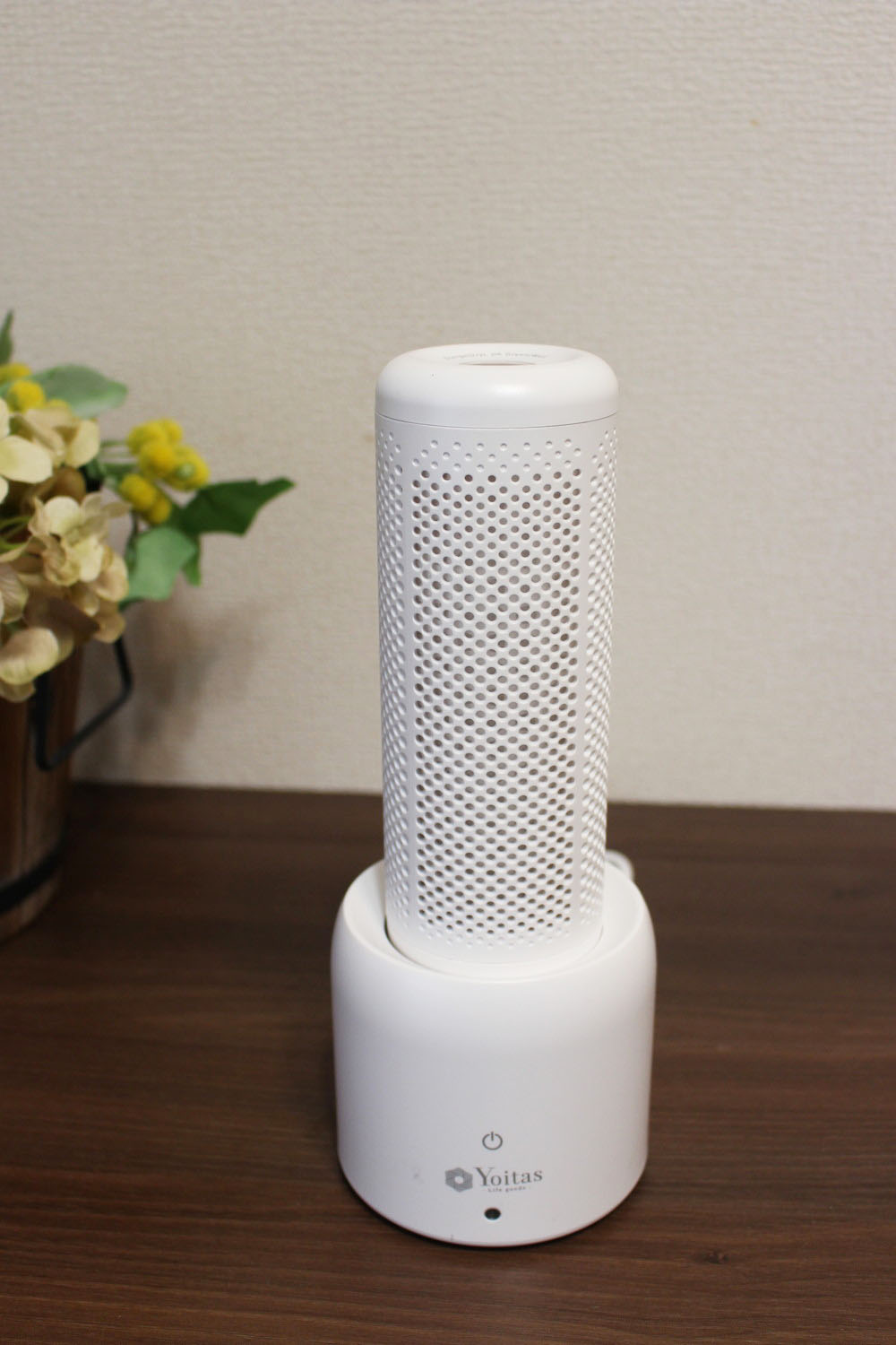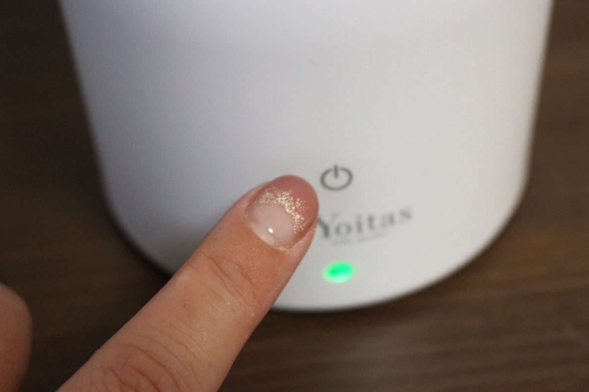 ちなみに吸湿量は1本あたり100mlだそうなので、コップ半分の水が溜まっている計算になります。そして、この水分を乾燥させてくれるのが、ドライスタンド。本体を差し込んで電源ボタンを押すと、乾燥が始まりました。