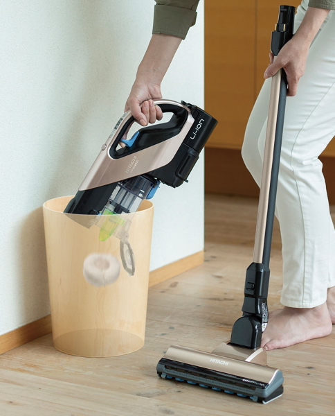 7種類のツールを組み合わせ、床から高い場所まで家中を掃除できる。独自の「小型ハイパワーファンモーターX4」により、小型・軽量でもパワフル吸引を実現。ダストケースを外さずゴミ捨てできる機構を搭載する。