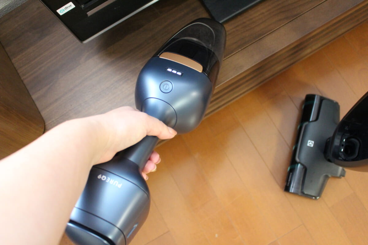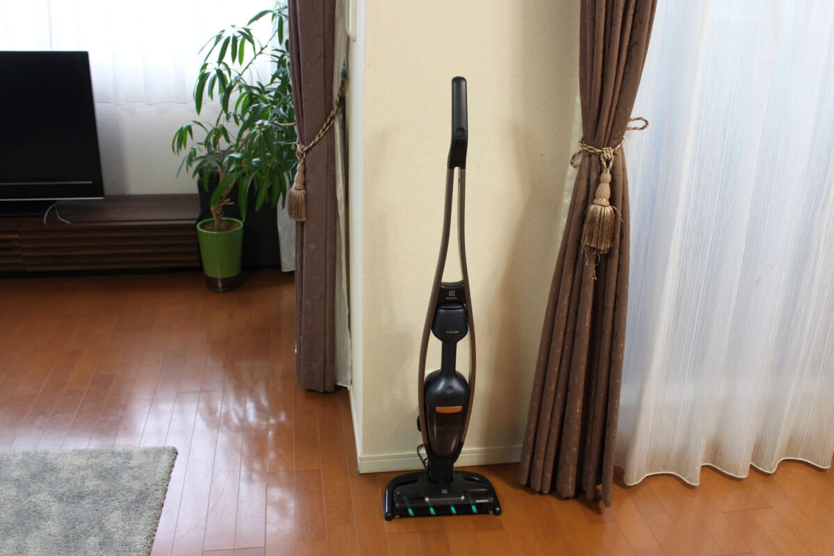 このように、Pure Q9をしばらく使ってみましたが、吸引力は十分なうえ、充電台からの着脱やハンディ部の着脱もスムーズ。使いやすさは大きく進化したと感じました。あとはこのデザインをどう見るか。個人的には従来のエルゴラピードも好きですが、このPure Q9も抜け感があって思った以上にインテリアになじみますし、徐々にオブジェのように見えるので、けっこう気に入っています。ホワイトサテン、マホガニーブラウンのカラーも含め、検討してみてはいかがでしょうか。