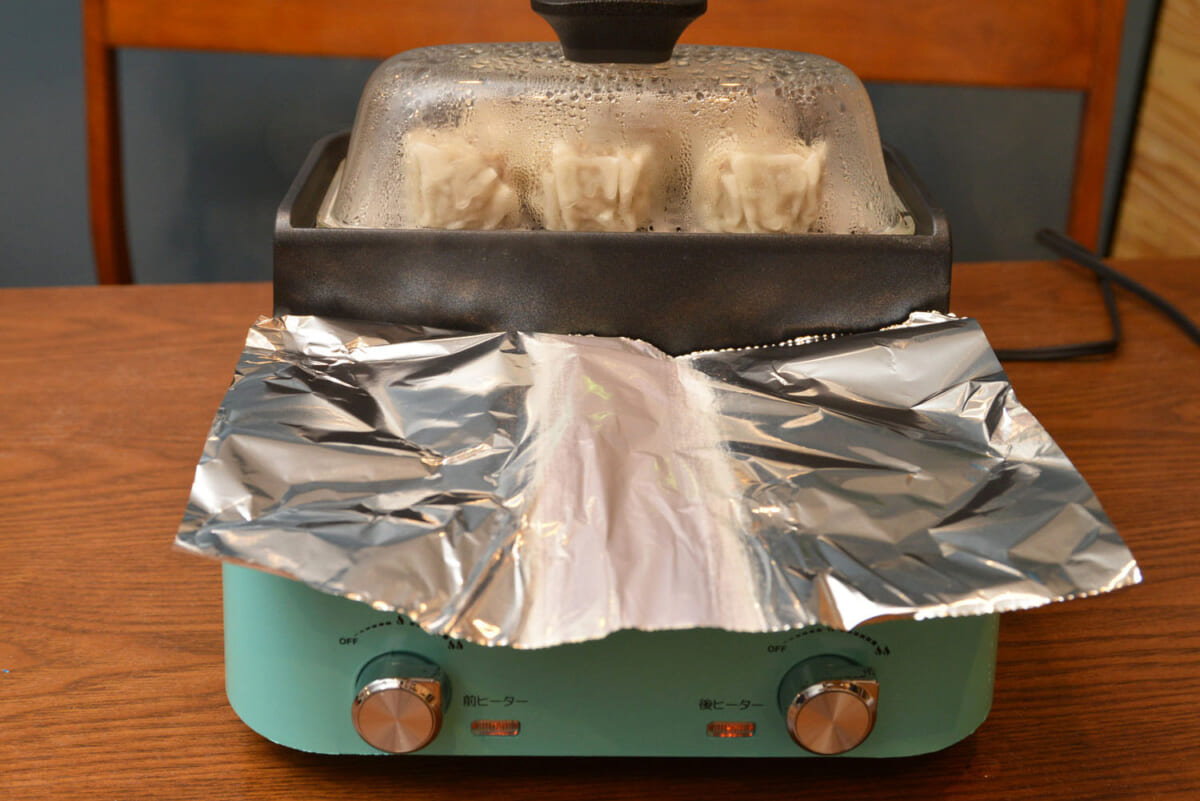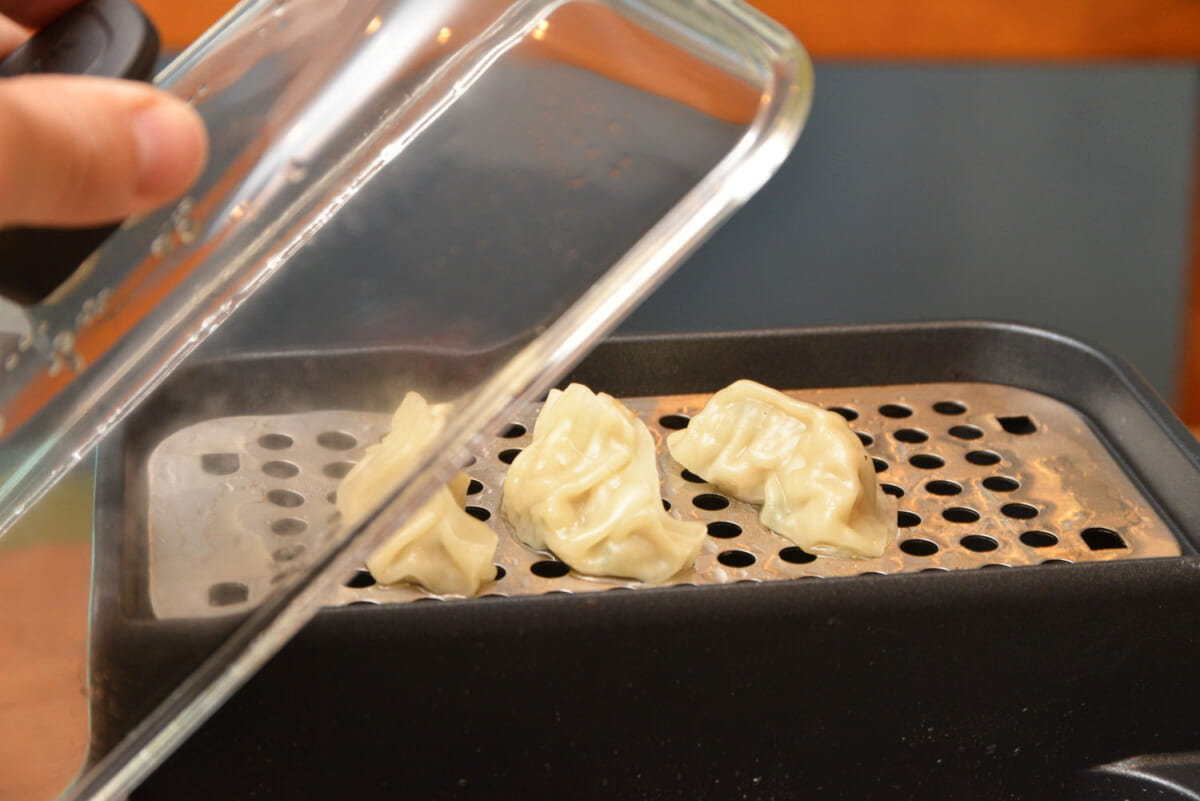 ちなみに、餃子と焼売を調理していたら、餃子のほうも蒸し焼きがしたいと思い、フタがもうひとつ欲しくなりました。本機にはひとつしか付いていないので、これは惜しいポイントです。