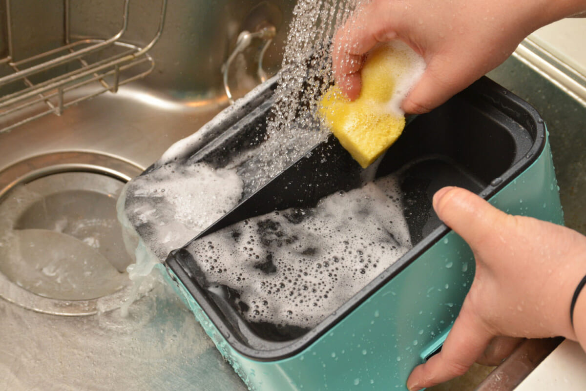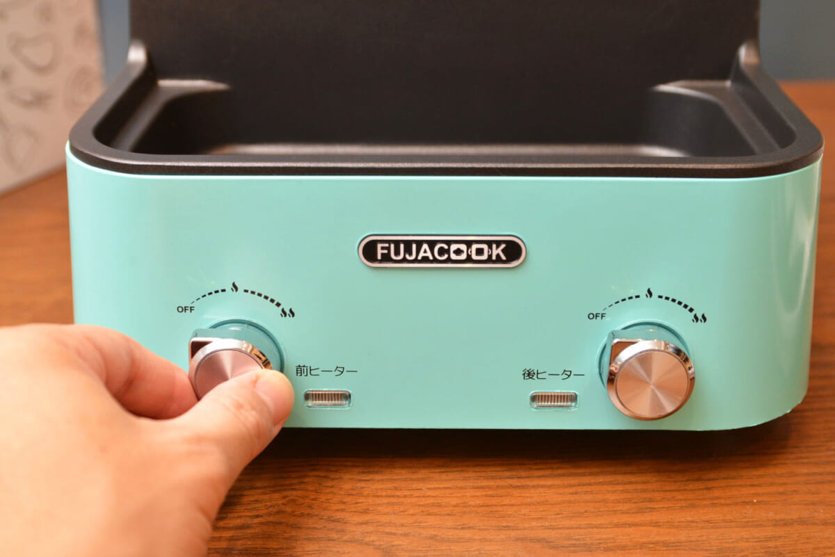鍋のプレートは取り外せないのが残念ですが、プレートはそのまま水洗いができて、お手入れも簡単です。独自の二層コーティングによって食材がプレートにくっついたり焦げついたりするのを防ぎ、油を使う量を抑えることもできます。