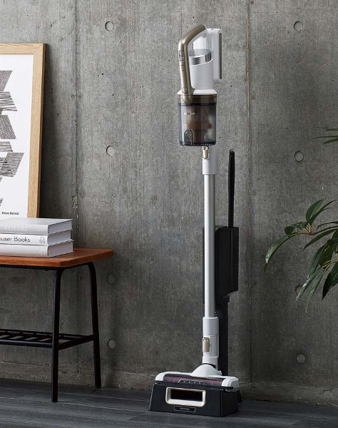 掃除機の使い勝手も抜群で、左のコードレススティックは特に秀逸だ。この価格帯は機能・付属品が最小限のものが多いが、本機は2段遠心分離サイクロン、ワンタッチゴミ捨てなど、1~2ランク上の製品に採用される機能をカバーしている。ヘッドのLEDライトも他社上位機種に見られる機構だ。