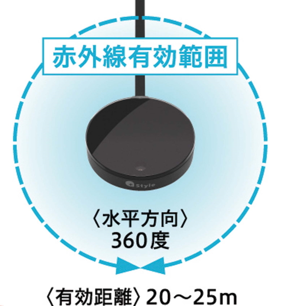 SPEC●無線方式:IEEE 802.11 b/g/n(2.4GHz)●赤外線有効範囲:送信約20~25m、受信水平360度/垂直180度●サイズ/質量:直径約60.2×高さ19.8mm/約53g