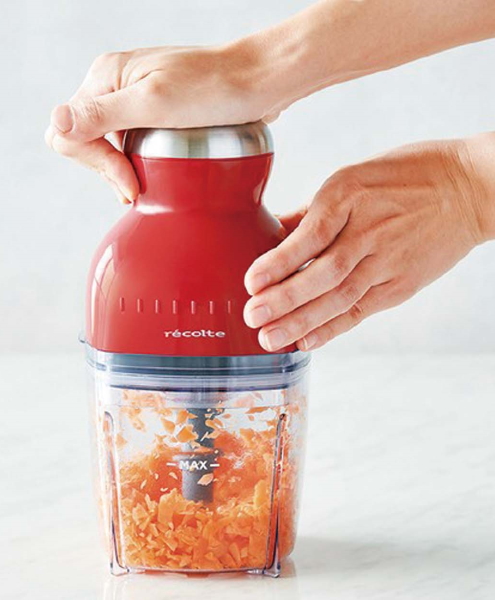 「玉ネギのみじん切りなど、必要な量を必要なときに素早く作れるので便利。泡立てや大根おろし、しょうがおろしも簡単です。コンパクトでかわいいデザインも、使っていて愛着が湧くポイント!!」