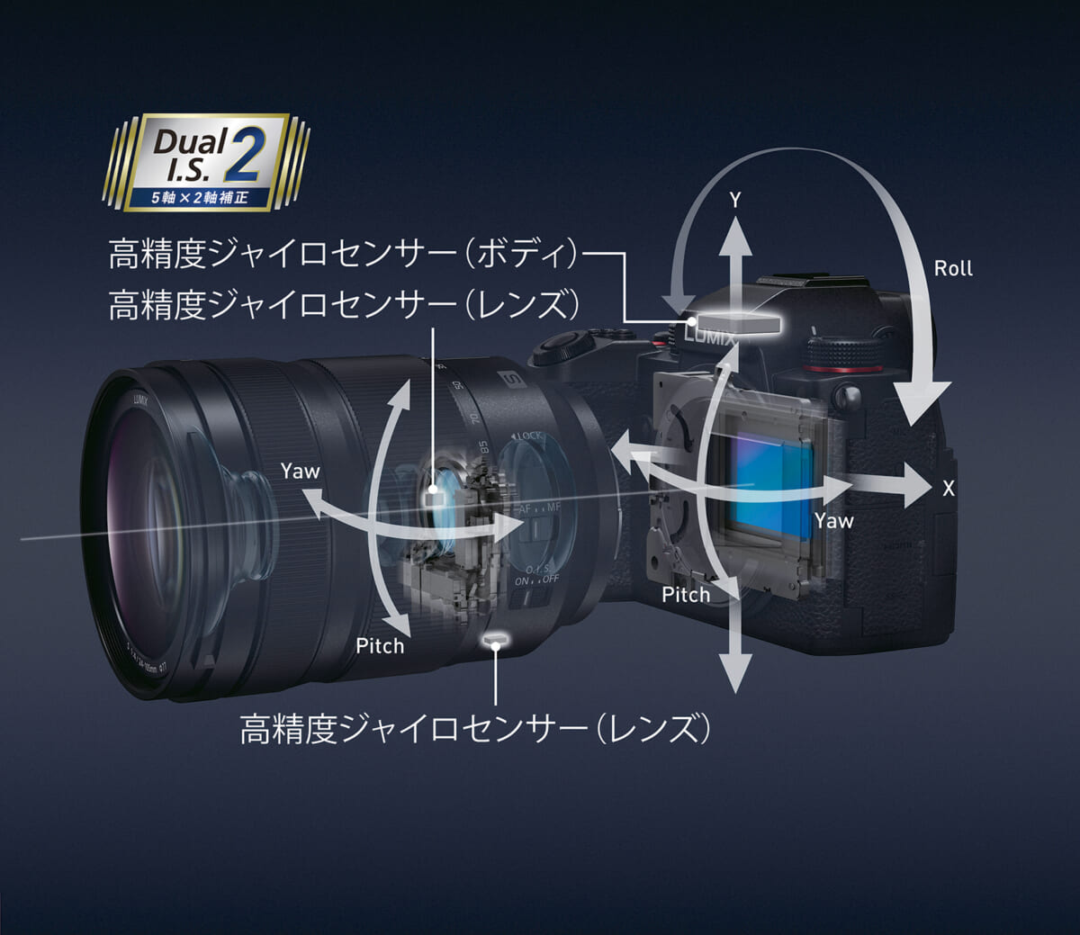 手ブレ補正は対応レンズとの併用で最大6.5段、ボディ単体でも5段という強力な補正効果を実現。夜景などでも安定して撮影することが可能です。そのほか、9600万画素相当の高解像写真を生成する「ハイレゾモード」や、星や夜景の美しい光跡撮影を手軽に楽しめる「ライブビューコンポジット」といった機能も備えています。