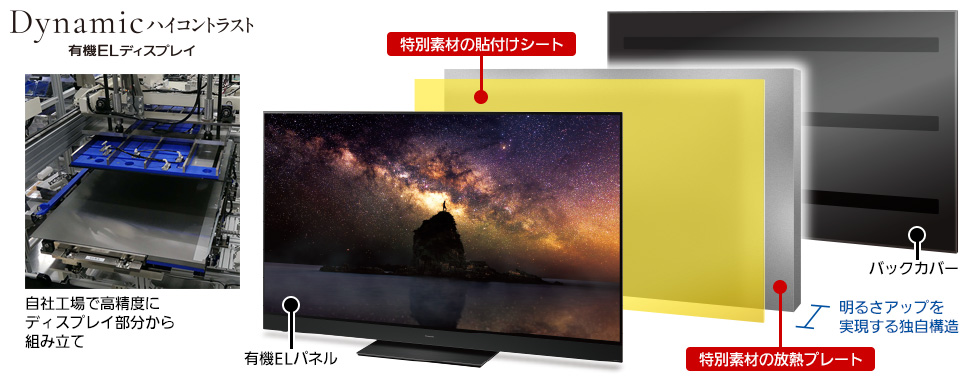 HZ2000シリーズは、同社の4K有機ELテレビの新フラッグシップモデル。前モデルGZ2000シリーズと同様、自社設計・組立の「Dynamicハイコントラスト有機ELディスプレイ」を搭載しており、明るいシーンでの色/階調表現を大幅に高めると同時に、有機ELが得意とする暗いシーンでの色/階調表現を独自の調整工程でより高いレベルに引き上げ、明部から暗部まで、より高いコントラスト性能を実現しています。