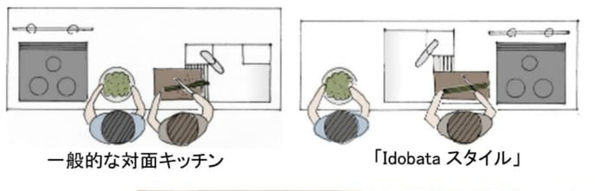 パナソニックが20~69歳の既婚の男女各1000名にアンケートを実施したところ、コロナ禍でストレスが増したものの第一位は「食事の準備」だといいます。一方、自宅でできる新しい趣味の第2位として挙げられるのも料理だったそうです。Idobata スタイルは「狭いスペースでも複数の人が効率的に作業できる」ことで、料理を手伝ってもらいたい人、そしてこれから料理を覚えたい人の両方のニーズを満たしてくれそうです。