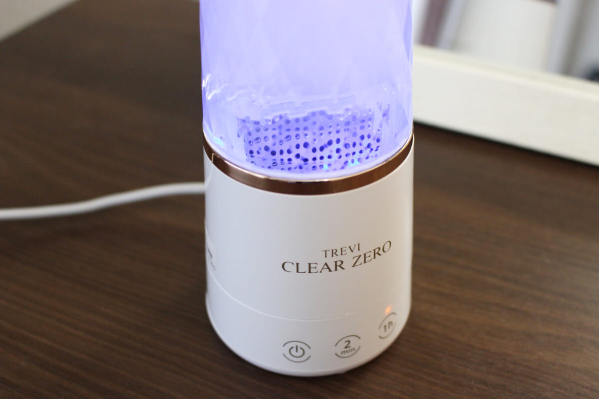 ちなみにオゾン水は、生成直後がもっとも濃度が高く、徐々に薄まってしまいます。10~15分以内に使えればいいのですが、それ以上使うなら、いったんボトルベースに戻し、再び紫色の合図が出てから使う必要があるようです。