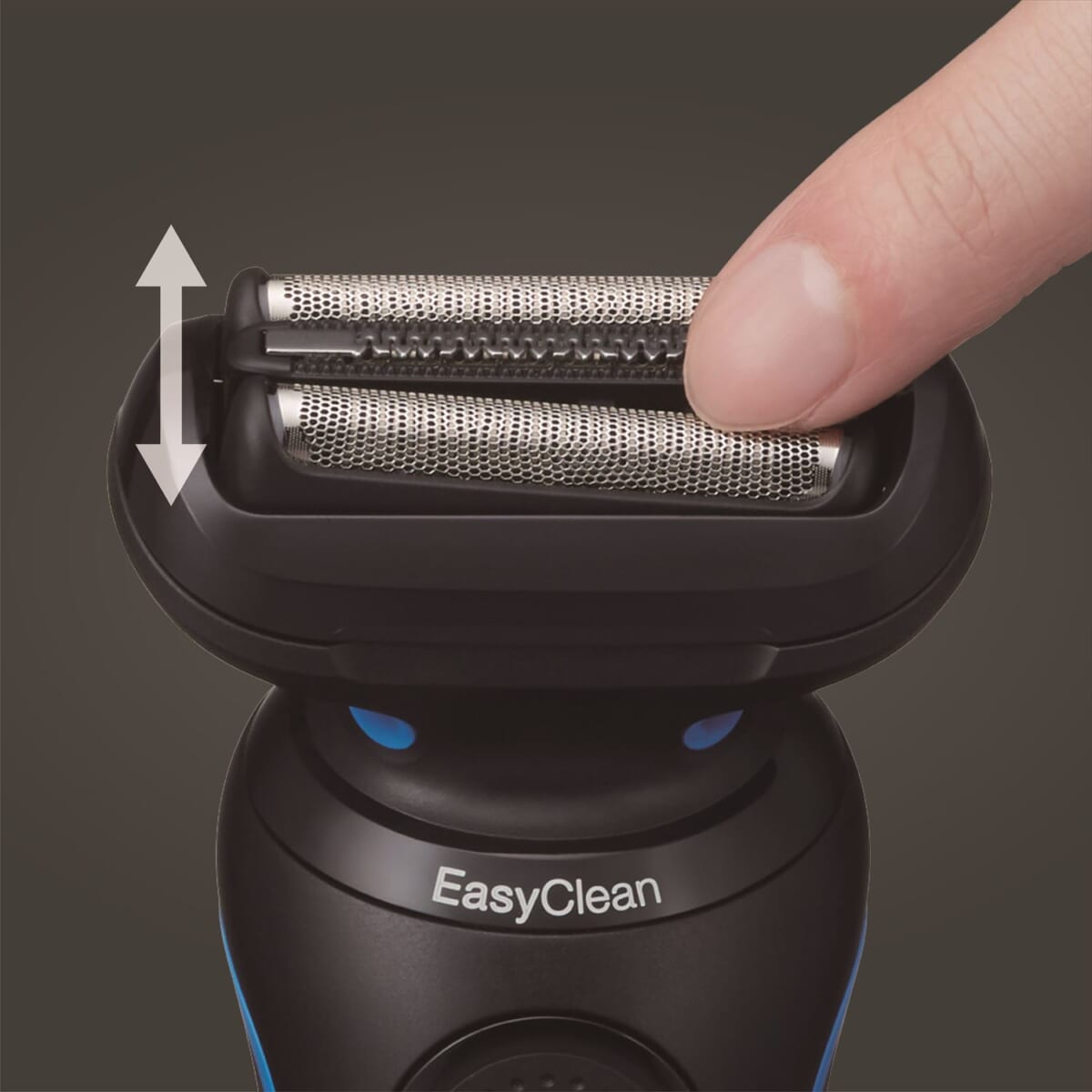 シリーズ6は、3連密着ブレードに加え、ヘッドが前後に動くことで、より顎下のラインに密着したシェービングができるようになっています。なお、クイック洗浄システムは採用していません。