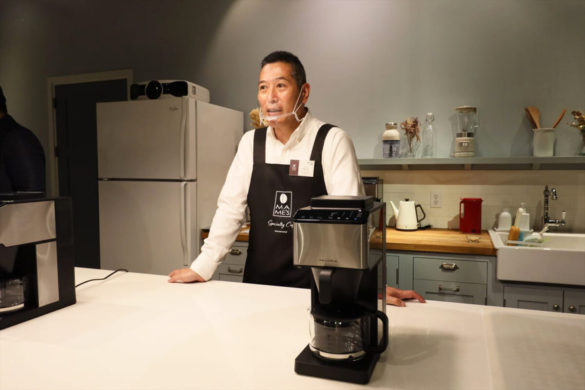 試飲会にはプレゼンターとして、東京都大田区蒲田でスペシャルティコーヒー専門店「マメーズ焙煎工房」を構える椎名 香店主が登場。全自動モデルが理にかなっているということを、次のように力説しました。
