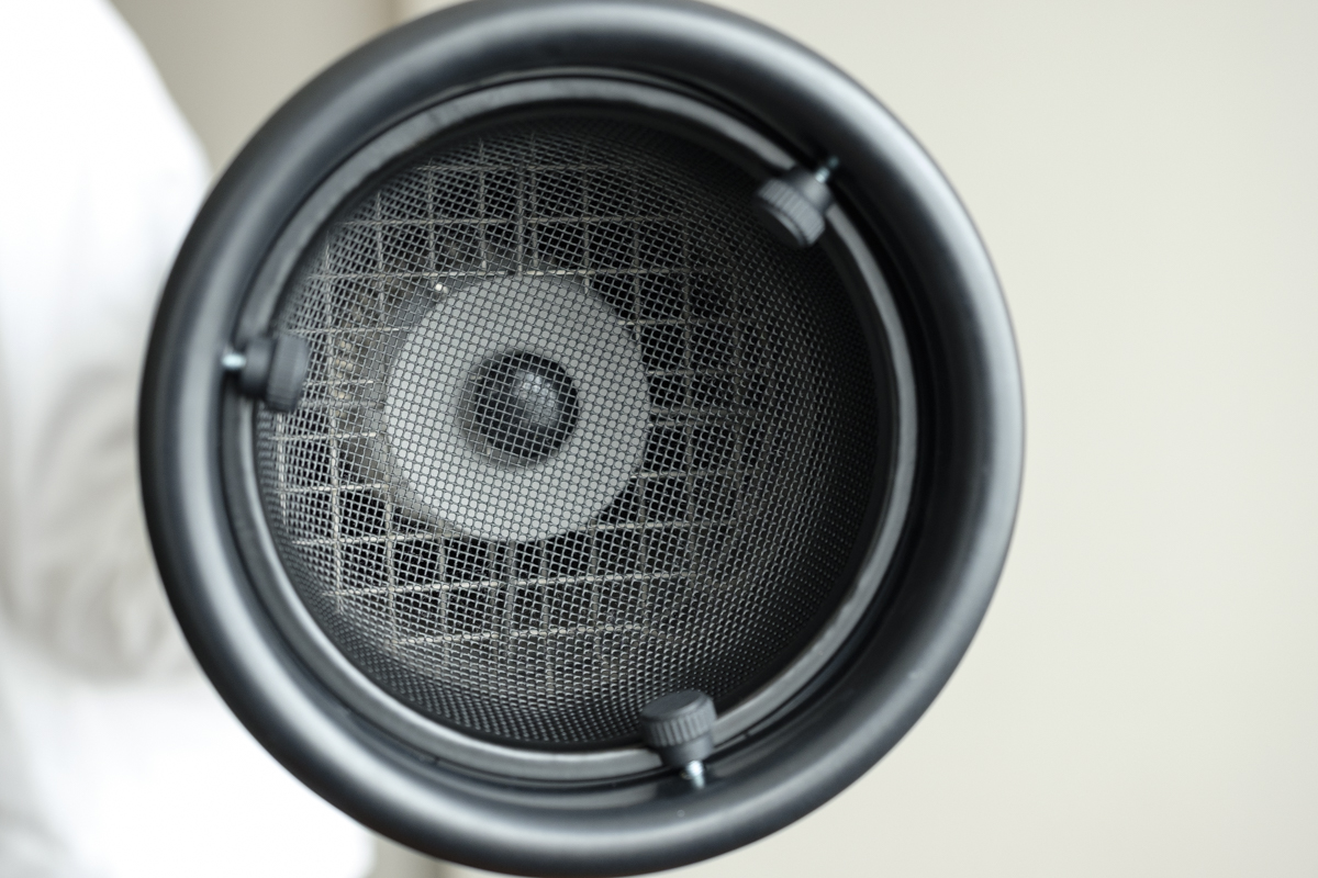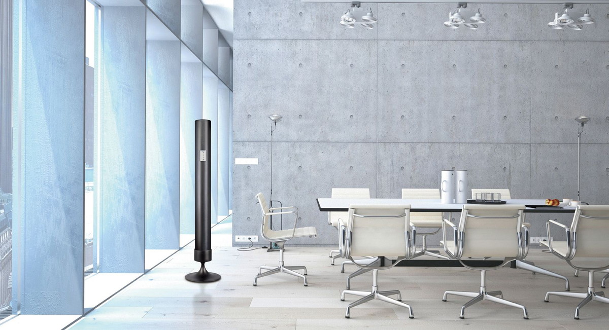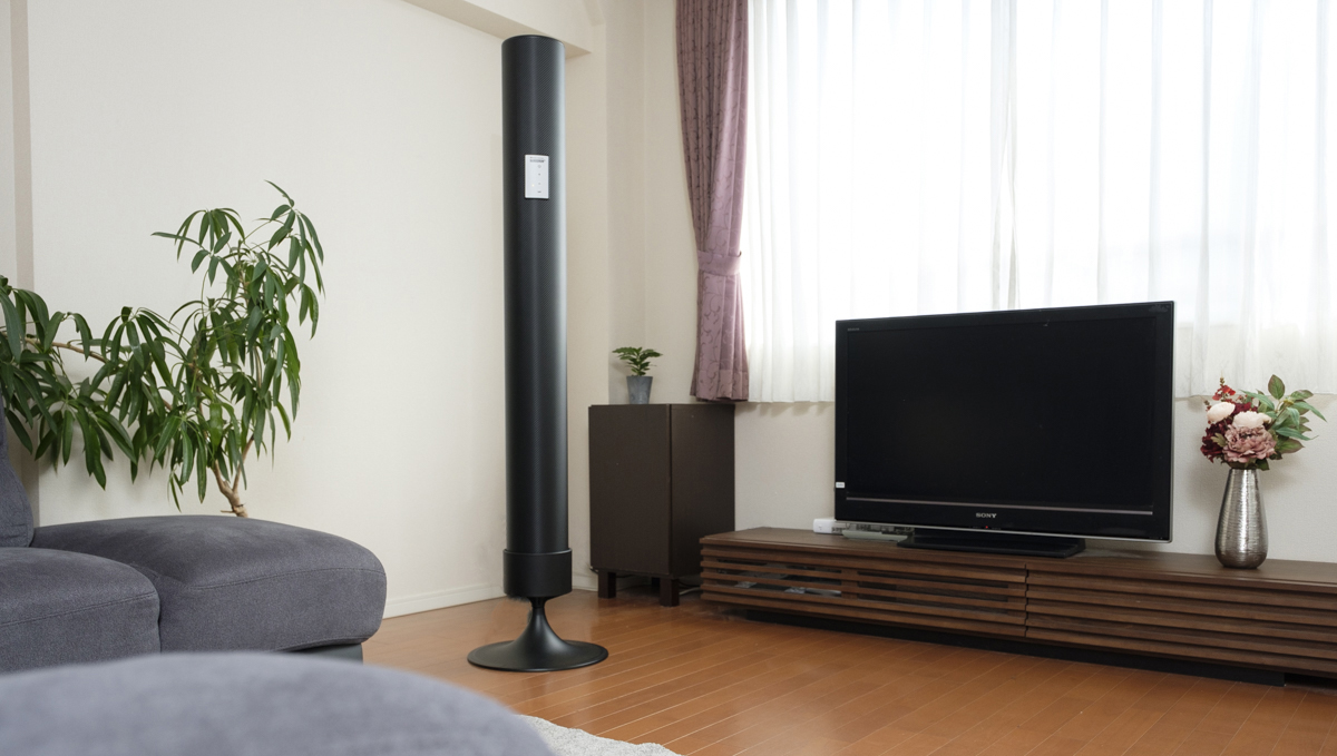 上から吸い込む構造にしたのは、より広範囲の空気を取り込めるとの開発者の考えによるもの。特に有害な微粒子は空間の1.8~2m付近に浮遊することが多いことから、これらを効率よく吸い込める高さとして165㎝に設計されているそうです。また下部から吹き出した空気が上部から吸い込まれることで、室内を循環する気流が生まれるため、ちょうどサーキュレーターのように、室内の温度や湿度を均一に保つ効果もあるそう。