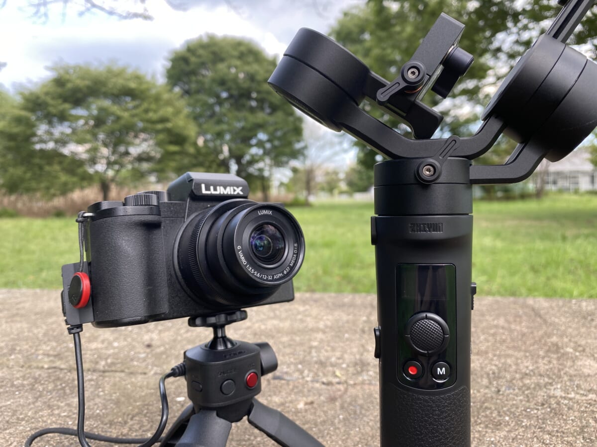 先ほど紹介したカメラはコンパクトでVlog向きなのは間違いないのですが、手ブレ補正が気になってしまいました。そこで導入したのが電動ジンバル「Zhiyun Crane M2」です。発売されたのは2019年の8月なのですが、これがZV-1やG100と相性抜群でした。