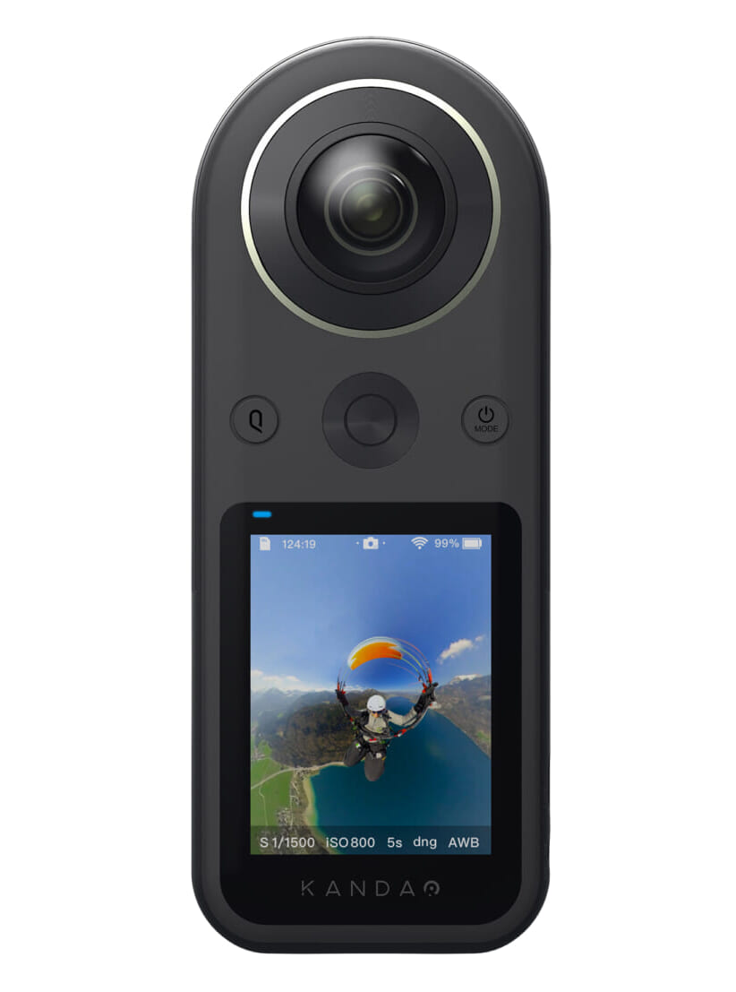 2019年末に登場した「KANDAO Qoocam 8K」は、コンシューマー機としては初となる8K全天周カメラ。2.4インチのタッチスクリーンが搭載され、ライブビュー撮影や各種設定変更が可能。360度撮影だけでなくVlog用途も意識した構成となっており、2つの魚眼レンズを切り替えて撮影したり、外部マイクなどを装着できるようになっています。