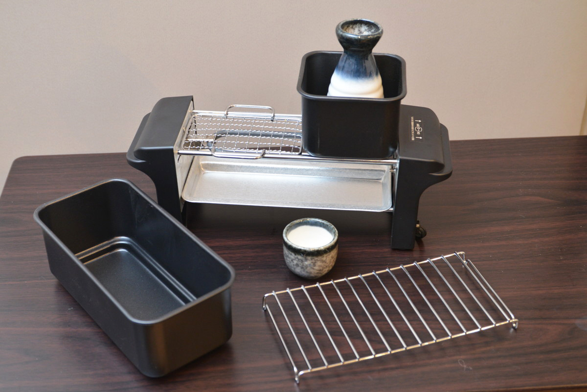基本的な調理を一通り試してみて、多彩な付属品による多機能ぶりに感心しました。ただし、鍋や網がいくつも付属しているのは個性的なのですが、すべてを同時に加熱できないこともあり、シンプルに焼物用の万能網とおでん鍋、炒め物などに使えるやや浅めのプレートの3つがあれば十分だったな……という気もします。特にとっくり&おちょこ付きの熱燗鍋は、オプションでもいいのでは? と感じました。