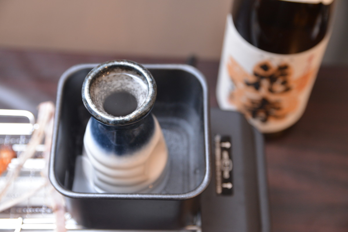 ここまではおつまみのご紹介でしたが、やっぱりお酒も大事。次は冬の晩酌に欠かせない熱燗を作ってみます。本来なら熱燗は、お酒を入れたとっくりを湯せんするなどして作られるもの。これを自宅でやろうとすると、意外と手間がかかりますが、「せんべろメーカー」なら、つまみを温めるついでに、お酒も温めることができるのです。