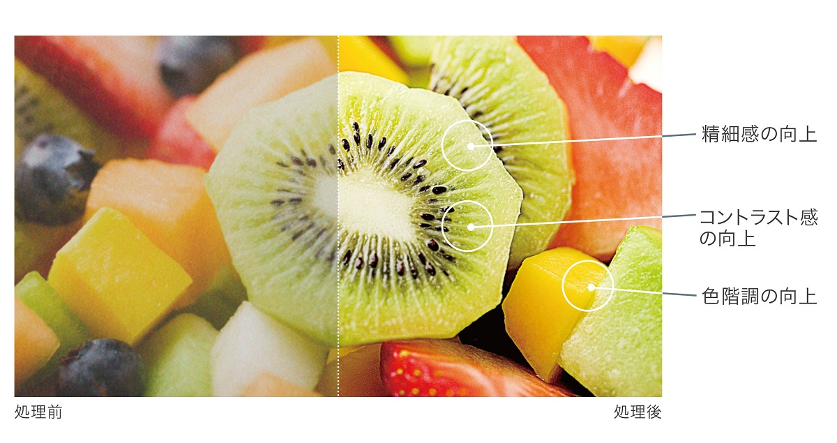これは、色彩学や心理学に基づく記憶色に着目し、撮影環境や視聴環境の影響で不自然になった人肌を自動で補正し、立体感や肌のトーンを向上させることで、美しいと感じる肌を再現するというもの。