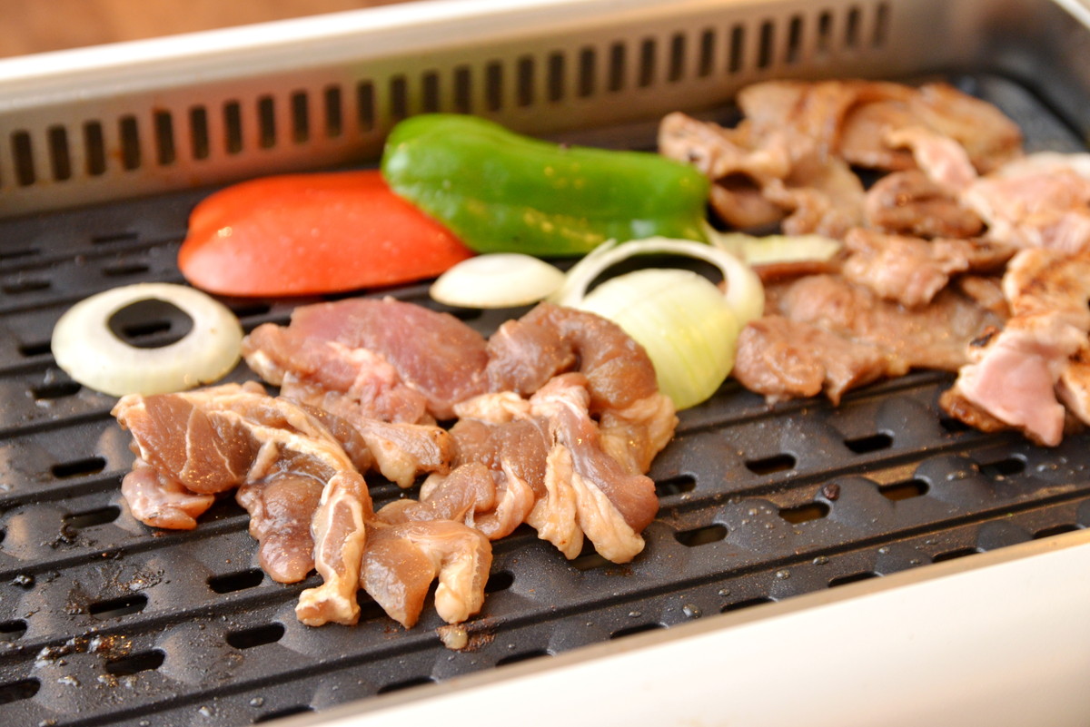 味付きの肉は、タレのしょうゆや糖分が熱され焦げ付くことで煙が発生しやすくなります。確かに本機の場合も、プレートにはそれなりに焼き色が付いていましたが、吸煙ファンによって煙はすっきり。焼肉店のように換気扇で外に排気されるわけではないのですが、本機を使って部屋の中が煙ることはありませんでした。また、プレートは表面のコーティングによって、焦げがこびりつくこともありません。