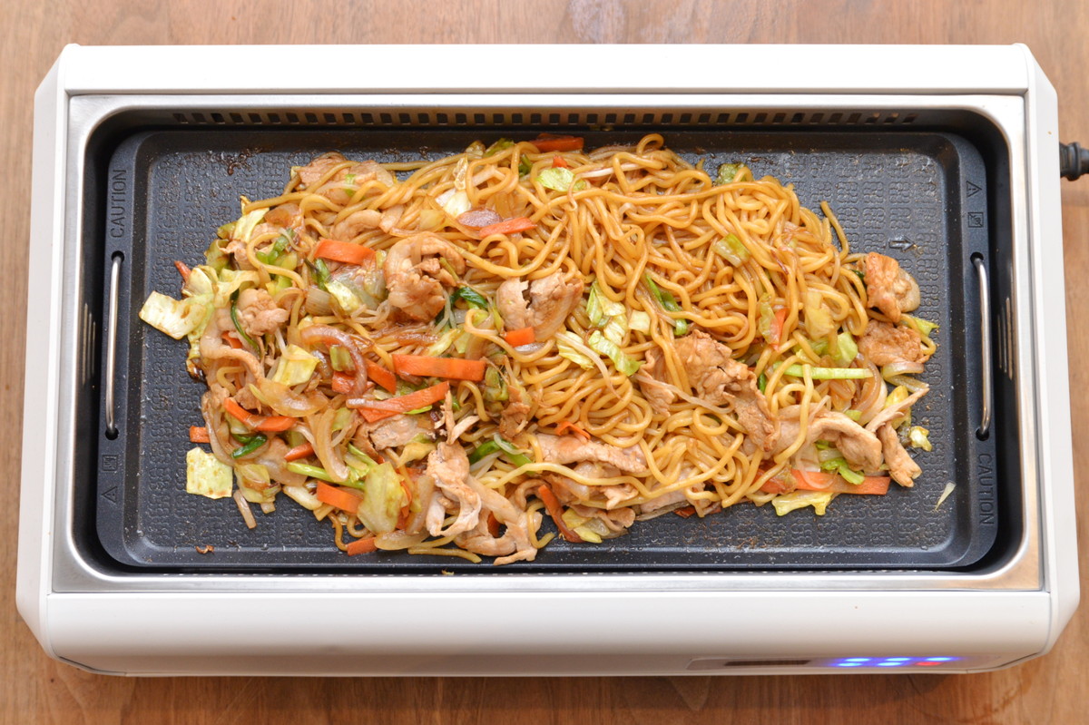 具材と麺を焼いて蒸し、ソースを入れて全体に絡める際も、煙が気になるようなことはありませんでした。焼きそばは焼肉のようにモクモクした白煙が出る料理ではありませんが、スマートに調理したい人には吸煙機能をオンにするのがオススメです。