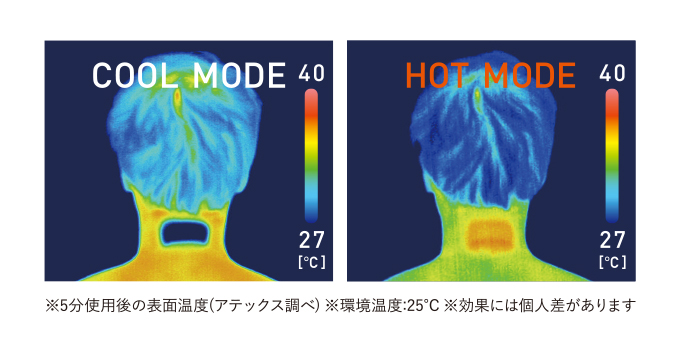 モノルルド ウェアラブル クールホット&ファンは、熱電冷却機能による風ゼロの冷温テクノロジーを搭載しています。クールモードの他、ホットモードも搭載しており、夏場の冷房の効いた室内で寒いと感じたら、温めアイテムとしても使えます。