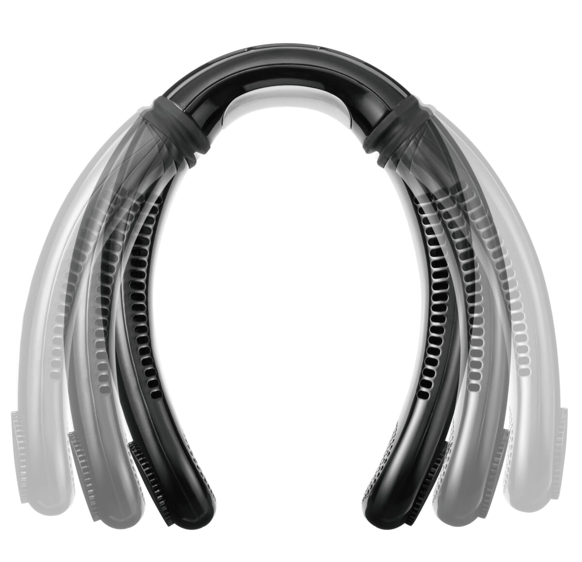 本体と一体型にしファンが見えないように設計。ファンを隠すことで人の目を気にすることなく、スタイリッシュに使うことができます。肝心の風は、フロント部で吸気し、首筋にあたるように吹き出し口の位置をこだわっています。