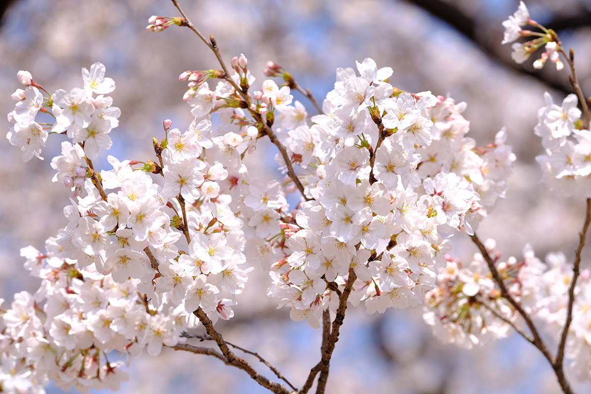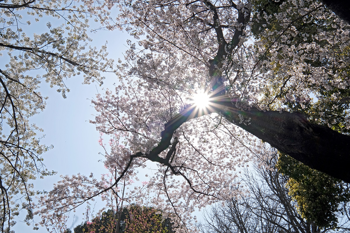 露出をややアンダーにすると青空の色に深みが出ますが、やりすぎると肝心の桜の色が冴えなくなります。最後にPL(偏光)フィルターを使う方法があります。これは太陽光線の不要な反射をカットするフィルターで、青空の色を濃くする効果も期待できます。