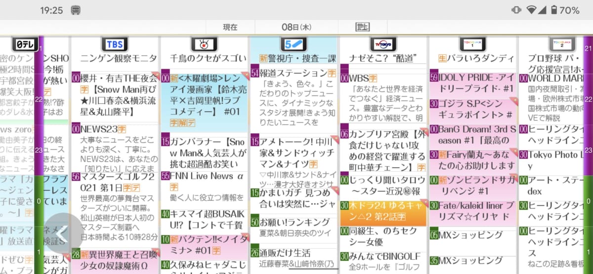 スマホにtorne mobileをインストールしたら、まずは現在放送されているテレビ番組を観てみます。最初の立ち上げには5秒~10秒ぐらい待ちますが、映像のストリーミングが始まれば以降はストレスなく楽しめる印象。