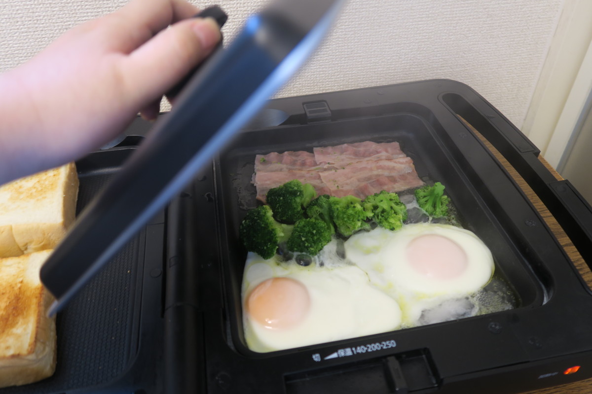 また、ホットプレートを朝食作りに活用するのもオススメ。食卓にいながら片面で食パンを焼き、もう片面でおかずが作れるので、キッチンを占有することもありません。その間、別の誰かがキッチンでお弁当作りに専念するといったことも可能です。
