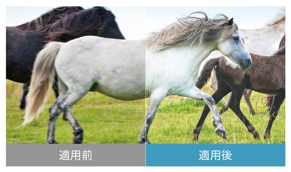 ↑地デジ放送のノイズを抑えてクリアな画質を実現する「「地デジAIビューティZR I」のイメージ