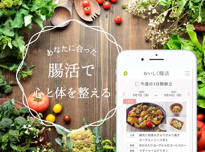 ↑個人の腸内環境に応じたサービスを提供する「おいしく腸活」