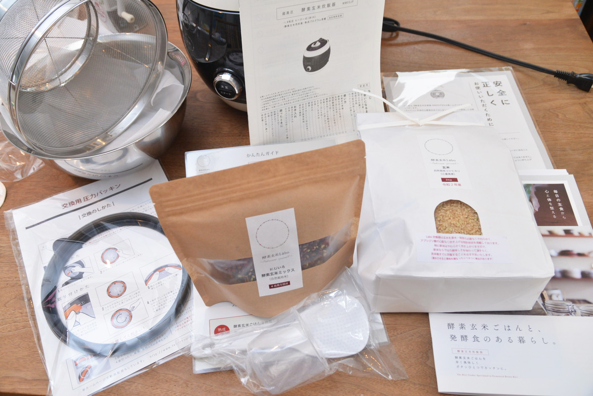 「Labo炊飯器」はこの約3日間の熟成が不要で、一般的な白米炊飯と同様に、炊いたらすぐ食べられるところが画期的。また、玄米の有害物質といわれる「アブシシン酸」が発生しないのも特徴です。筆者は「Labo炊飯器」のスタートセット(税込8万850円)に付いてくる自然栽培玄米と酵素玄米ミックスを使って炊いてみました。
