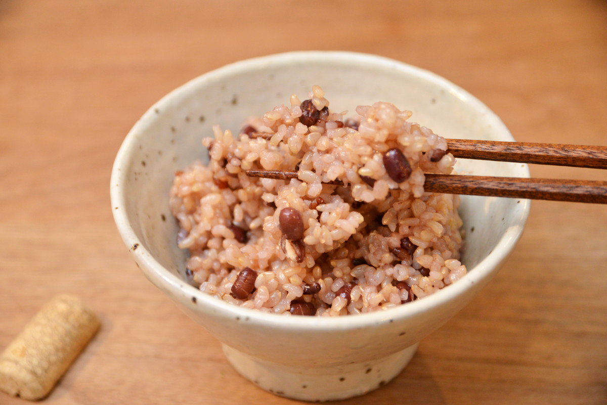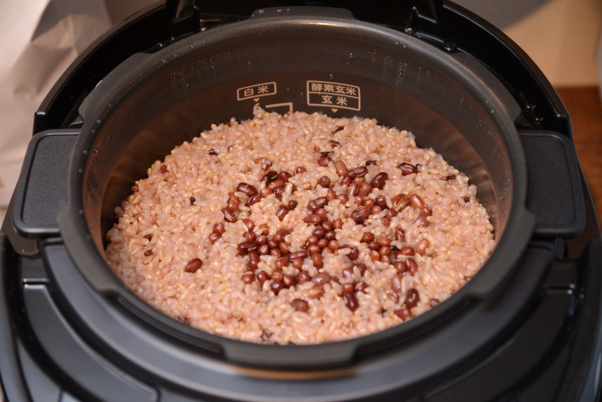 まずは改めて酵素玄米とは何か、説明しましょう。これは炊いた玄米に小豆と塩を入れ、圧力をかけて3日間程度保温、熟成させたごはんのこと。熟成させることでやわらかくもちもちとした食感になり、消化しやすい点も魅力です。